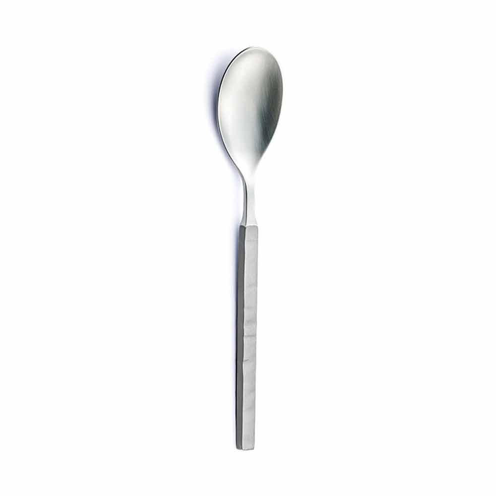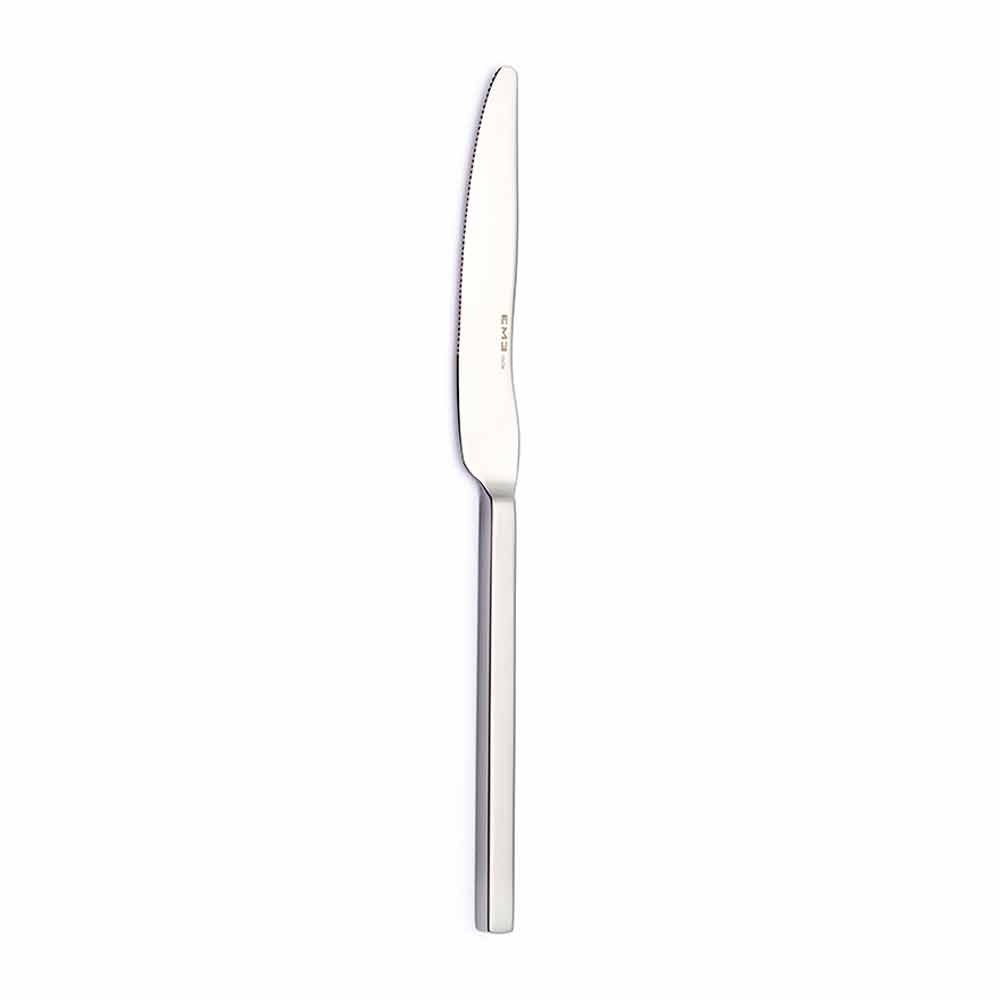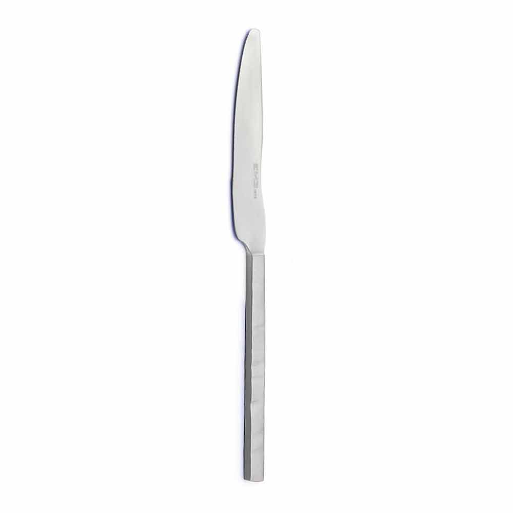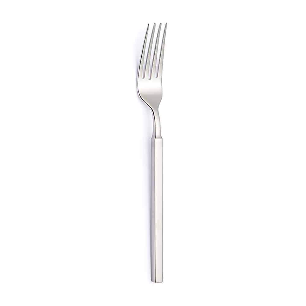 Fabricada en acero forjado, el diseño cuadrado y la atención funcional distinguen esta colección de cubiertos inspirada en los espacios urbanos modernos. Los
