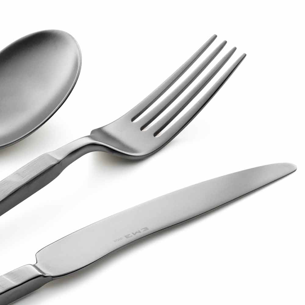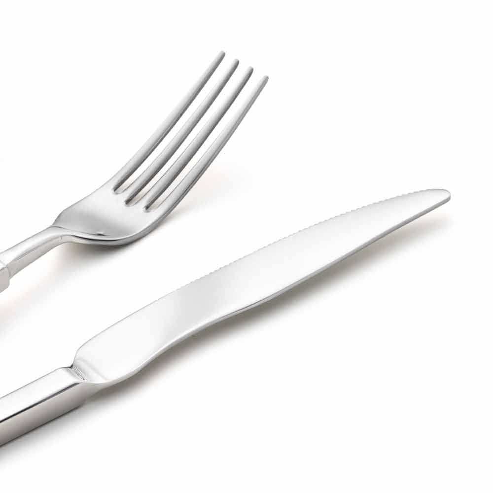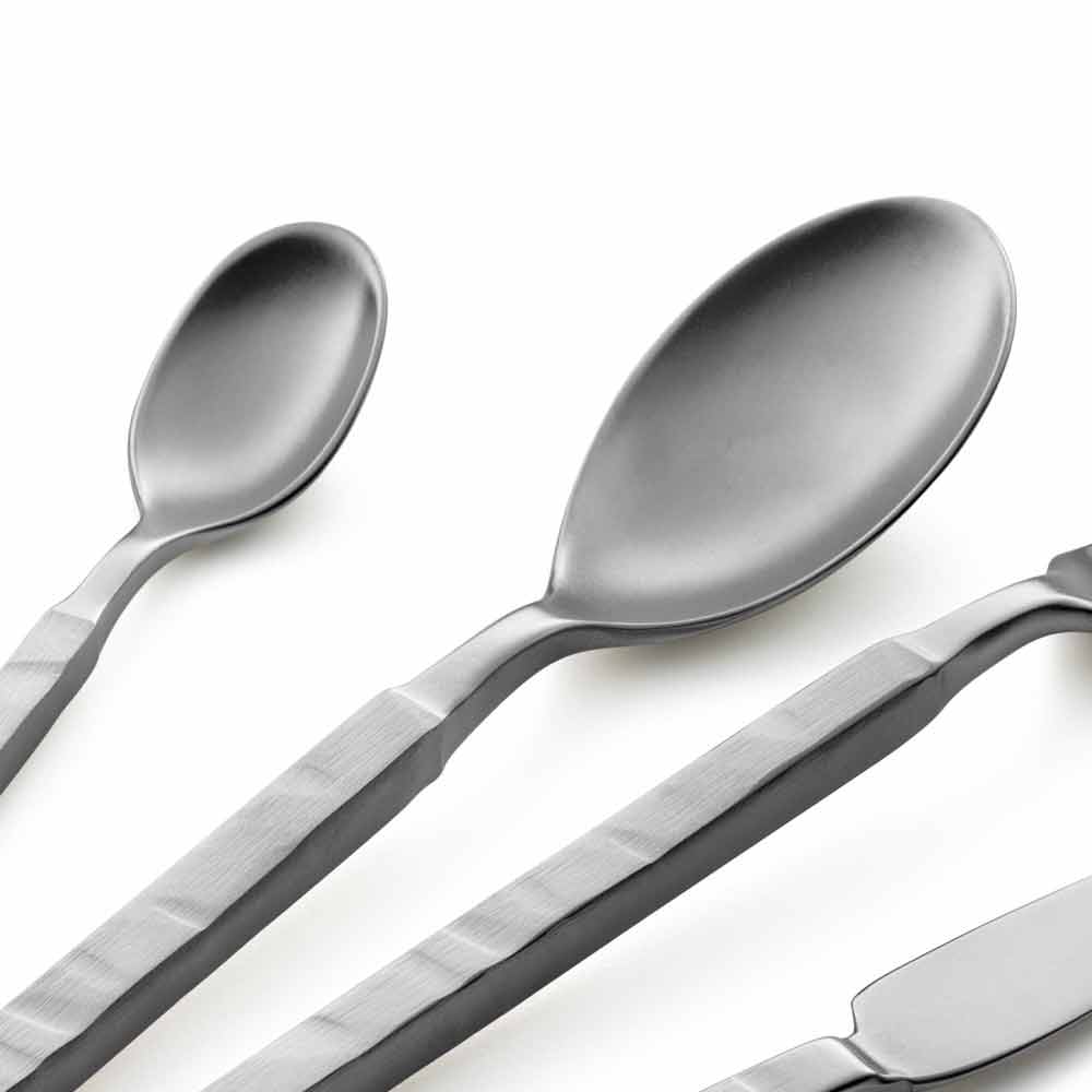 Juego de cubiertos de acero inoxidable pulido o arenado, diseño moderno made in Italy.