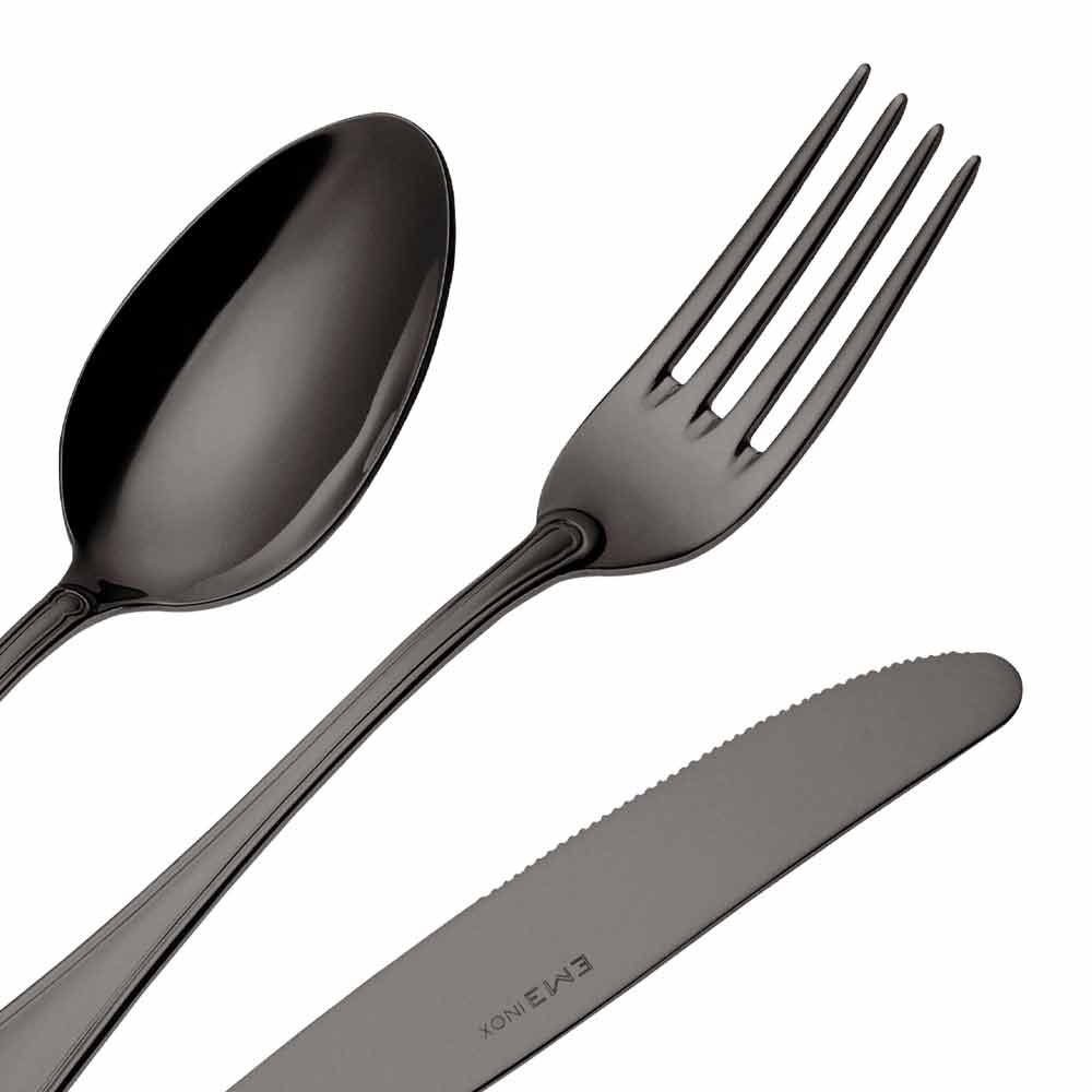 Es una colección de cubiertos de acero inoxidable 18/10, es decir, con 18% de cromo y 10% de níquel, que garantizan una excelente resistencia a la corrosión y facilidad de limpieza con un excelente coeficiente higiénico.