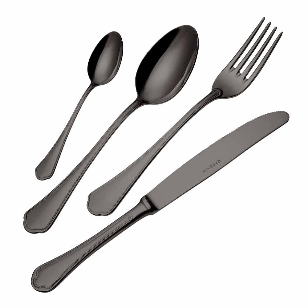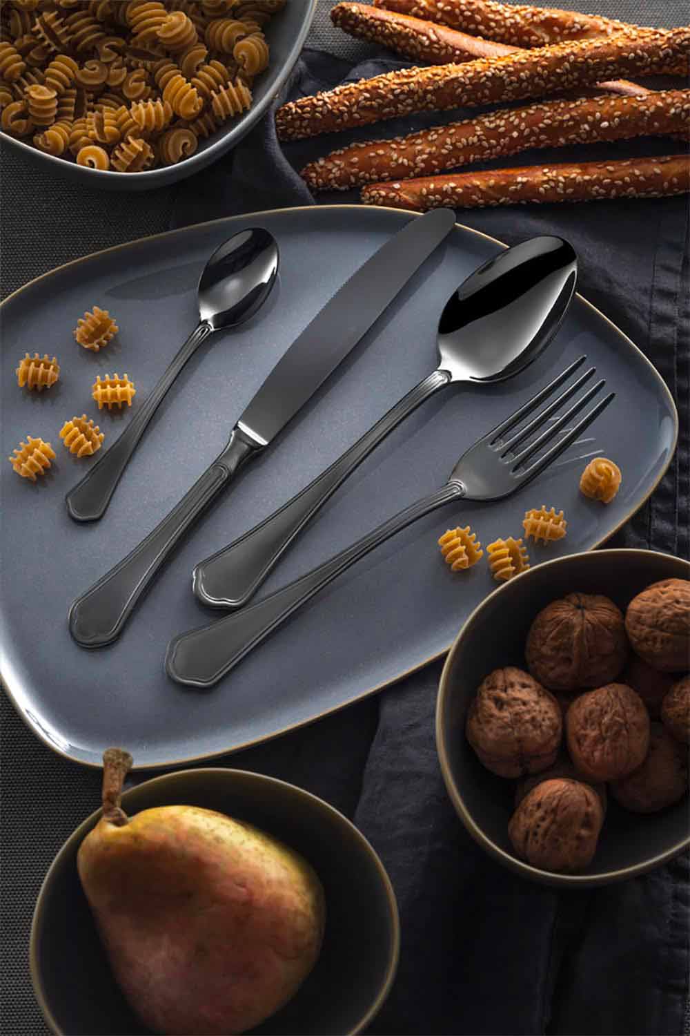 24 cubiertos de acero inoxidable, juego completo en 5 acabados de diseño clásico made in Italy.
