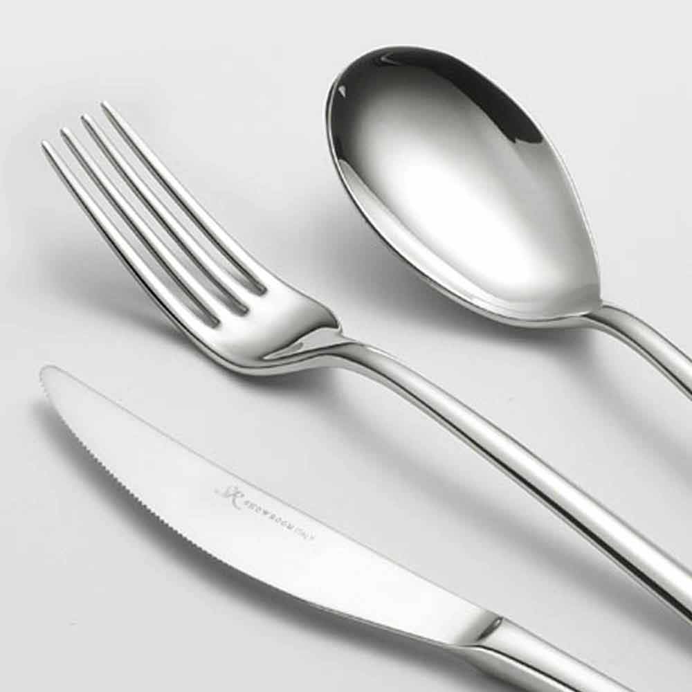 Cubiertos de acero inoxidable 24 con acabado pulido, diseño moderno made in Italy.