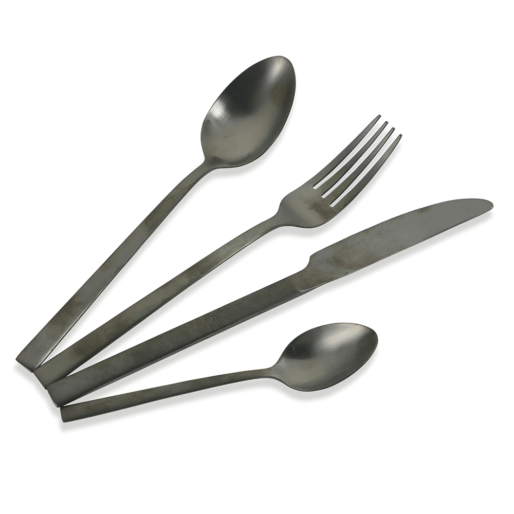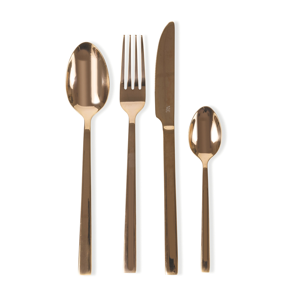 Cubertería de diseño en acero cobre brillante o mate o negro, 24 piezas.