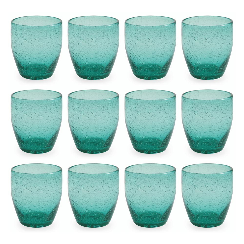 Vasos de agua de vidrio soplado color verde esmeralda, juego de 12 piezas.