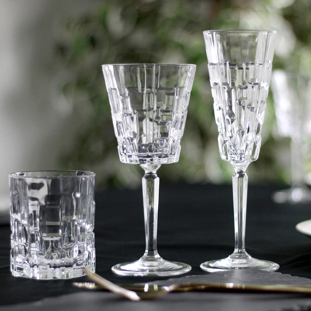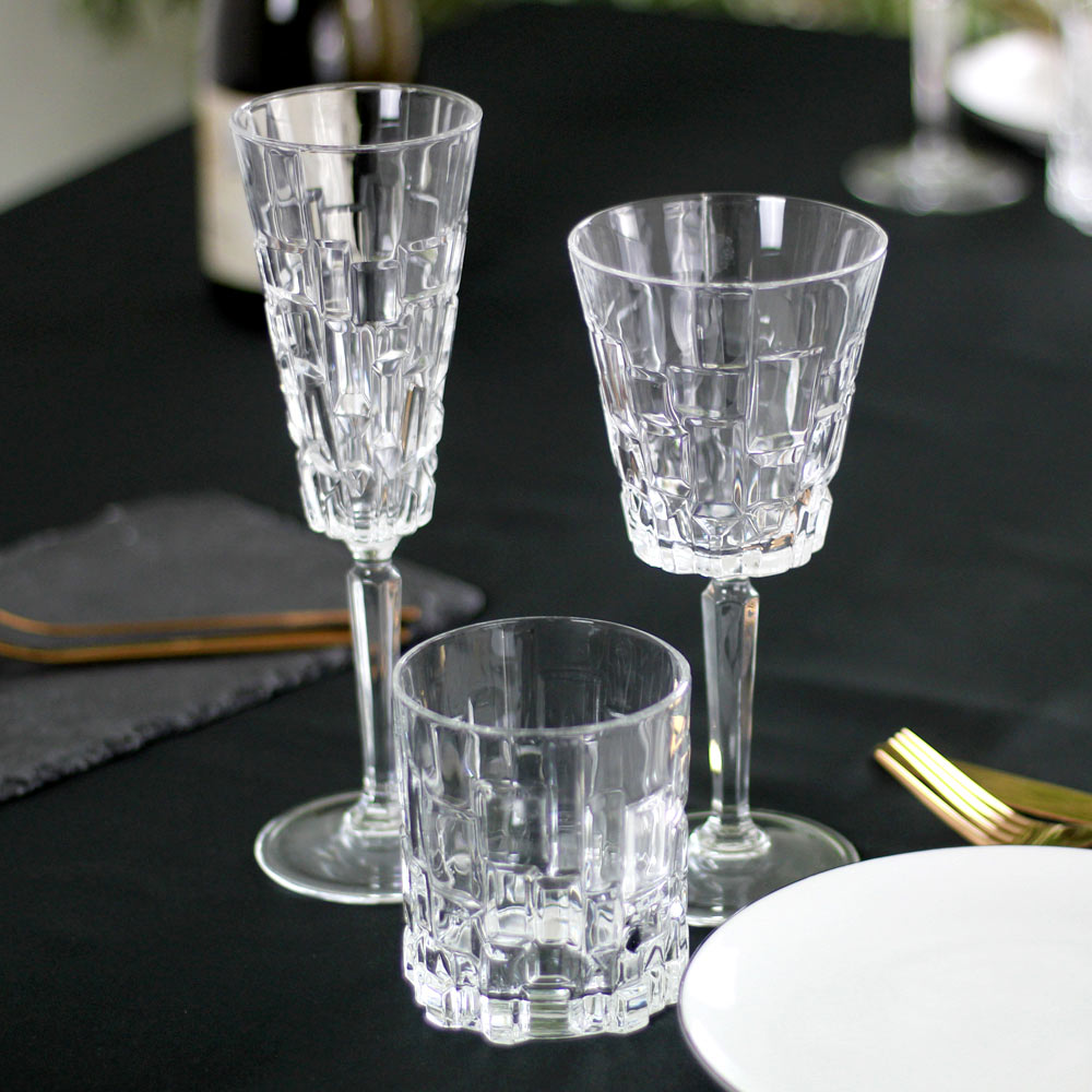 Las copas, de estilo moderno y sofisticado, presentan un original patrón de malla de cuadrados interconectados. Perfectas para realzar tu mesa con un toque de estilo único, combinan belleza, durabilidad y practicidad .