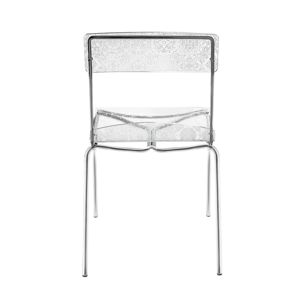 Elaborada por expertos con plexiglás de polímero 100% virgen , la silla cuenta con una carcasa transparente que celebra su geometría única. Cada rincón, cada línea, cada curva está diseñada para captar y reflejar la luz, manteniendo su impecable brillo año tras año.