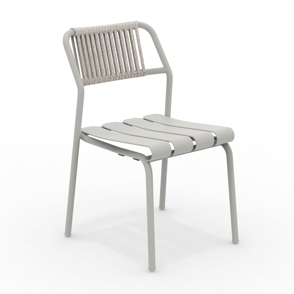 Su estructura ligera pero robusta está diseñada para ofrecer la máxima comodidad, con un asiento ergonómico y un respaldo moldeado de cuerda que garantizan un soporte cómodo y relajante. Las láminas de aluminio le dan un aspecto dinámico y moderno, mientras que el acabado añade un toque de elegancia y refinamiento.