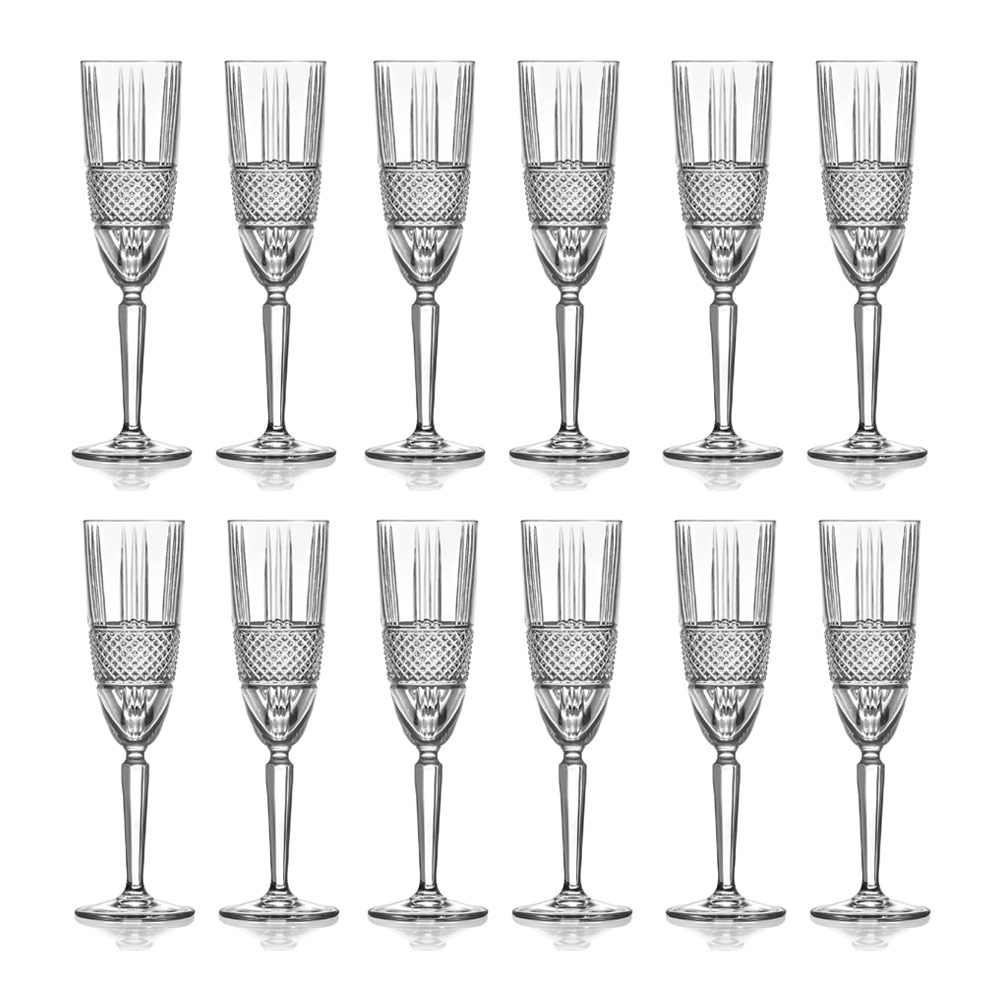 Juego de copas de flauta en cristal ecológico talla diamante, 12 piezas fabricadas en Italia.