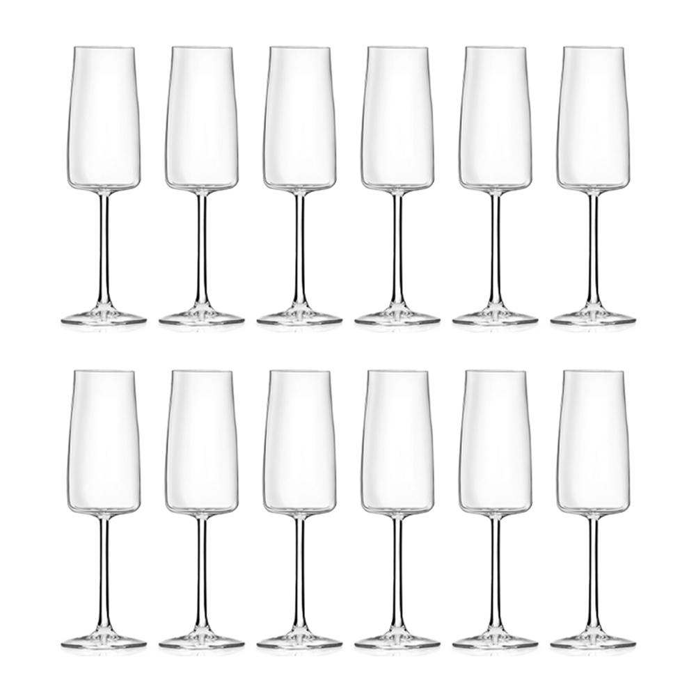 Copas de vino espumoso o copa de champán en cristal ecológico minimalista, 12 piezas fabricadas en Italia.