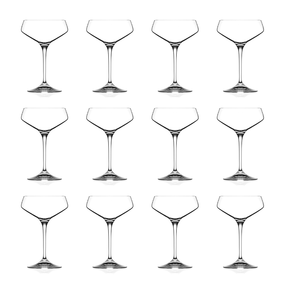 Juego de copas de champán de cristal ecológico de 12 piezas fabricadas en Italia.