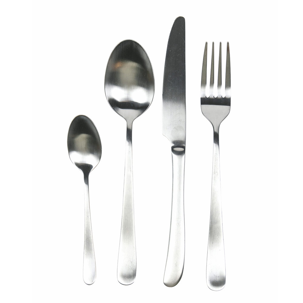 Cubertería de acero mate de diseño redondeado de 24 piezas.