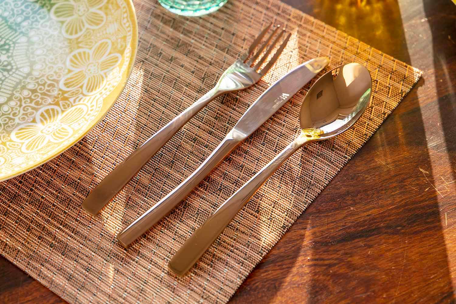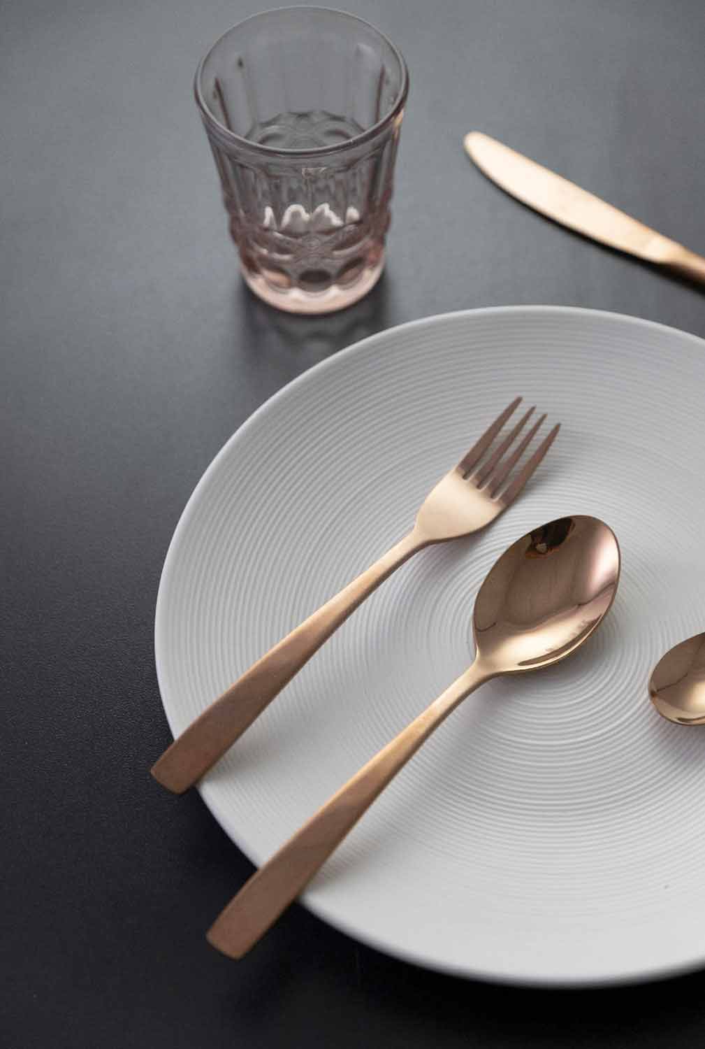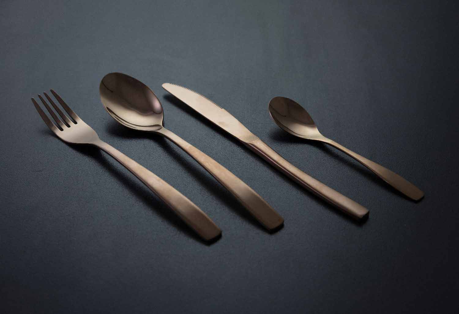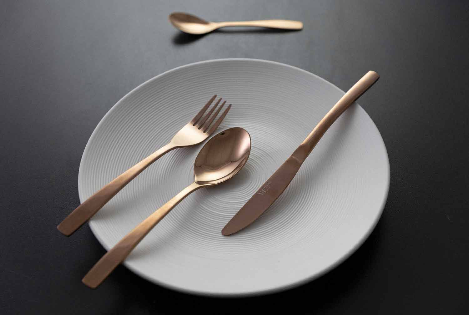 Una línea de cubiertos preciosos, educados, extremadamente elegantes y lujosos.
