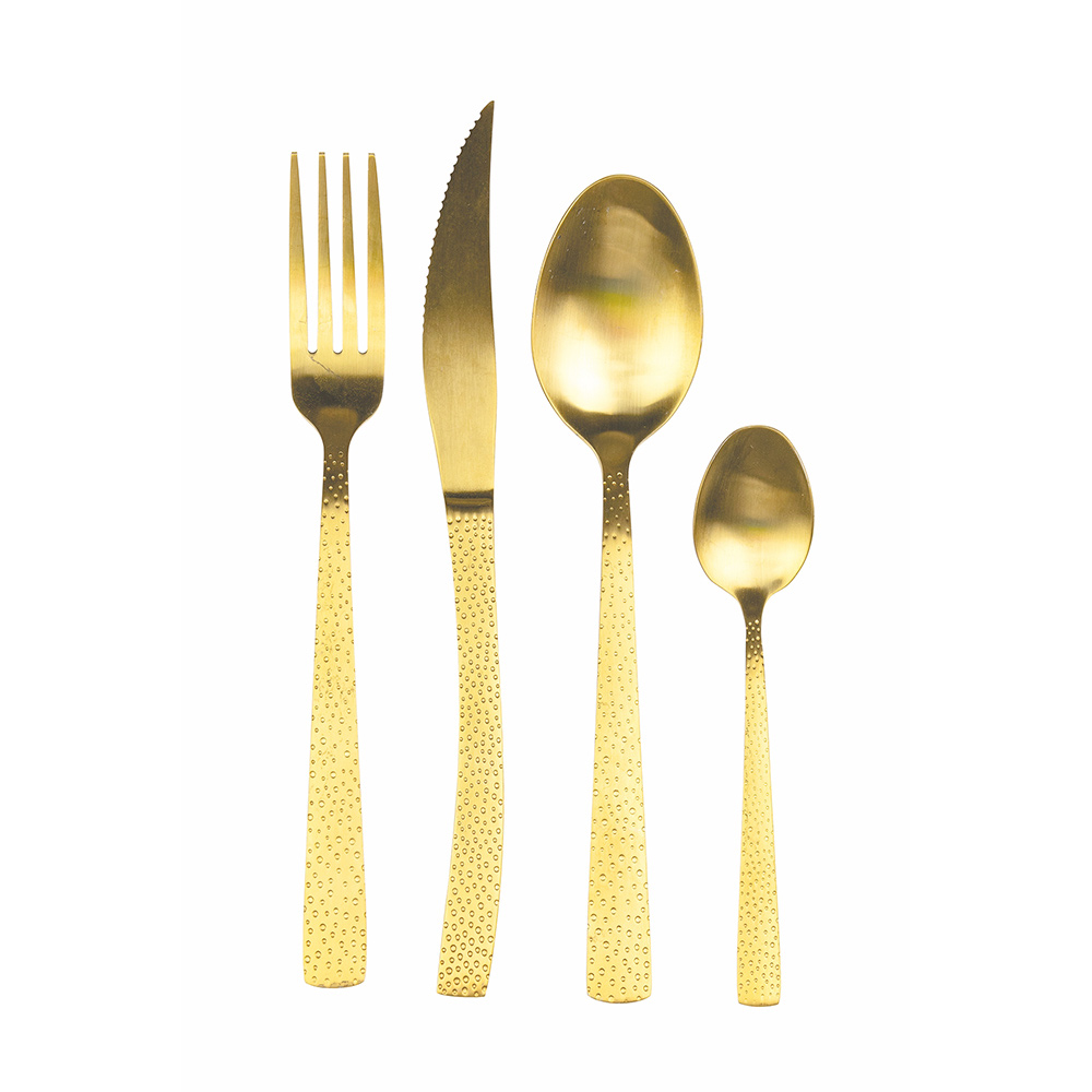 - El juego consta de 6 cucharaditas, 6 cucharas, 6 tenedores, 6 cuchillos.