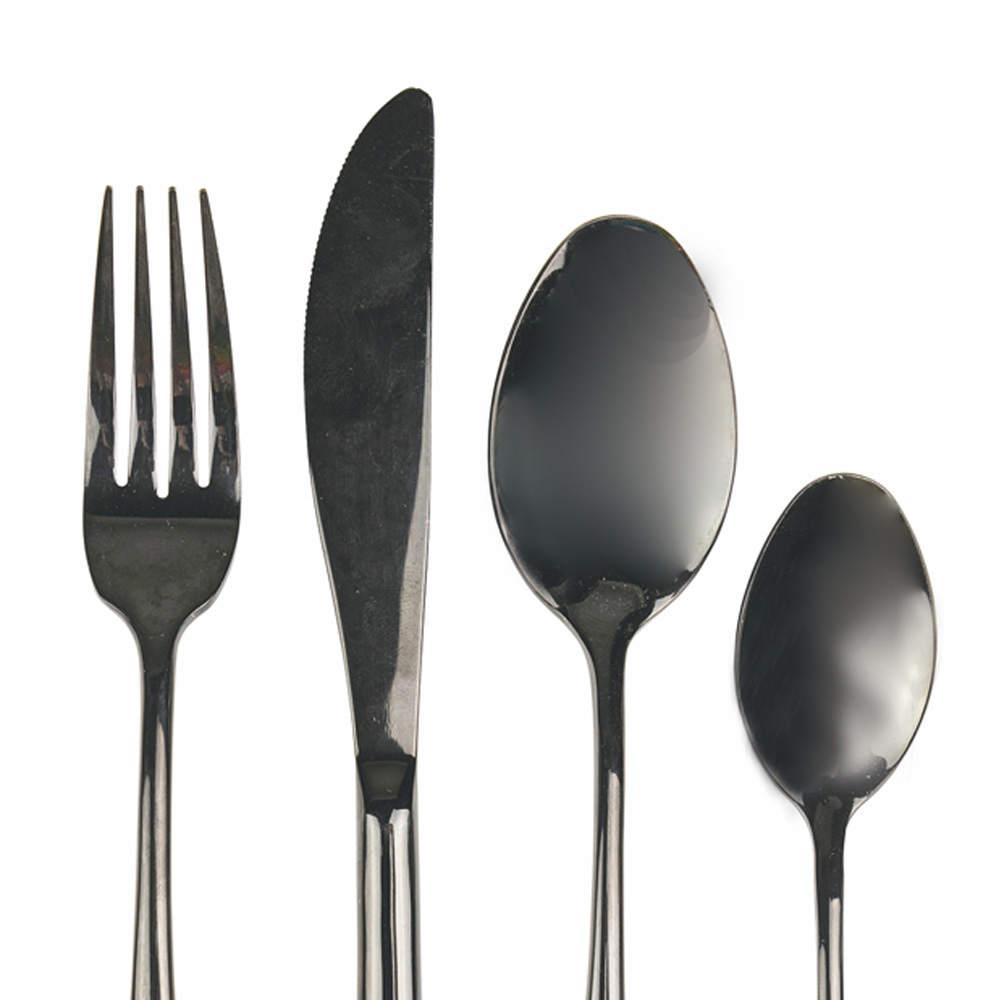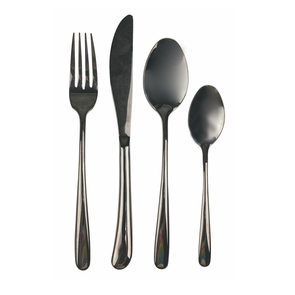 Juego de cubiertos de acero negro brillante diseño redondeado 24 piezas - gota