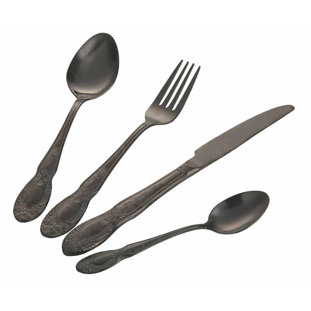 Cubertería completa en diseño oro satinado o negro 24 piezas.