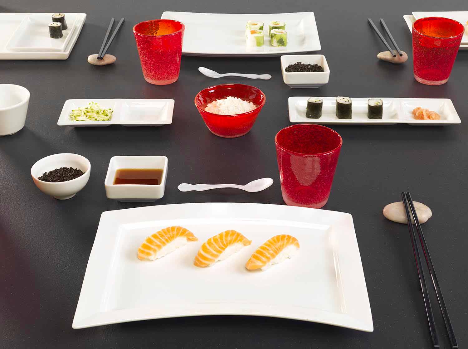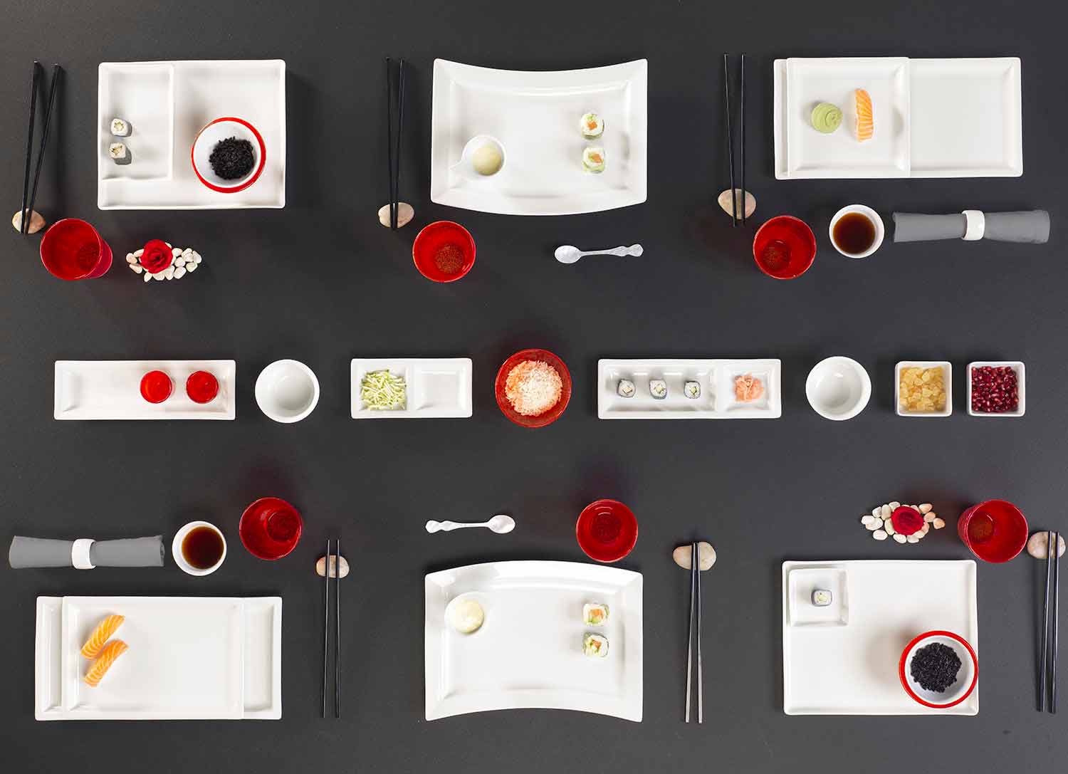 minimalismo asiático y para adaptarse con orden a la comida que reciben, dando a la hora de la comida, sensaciones de bienestar.