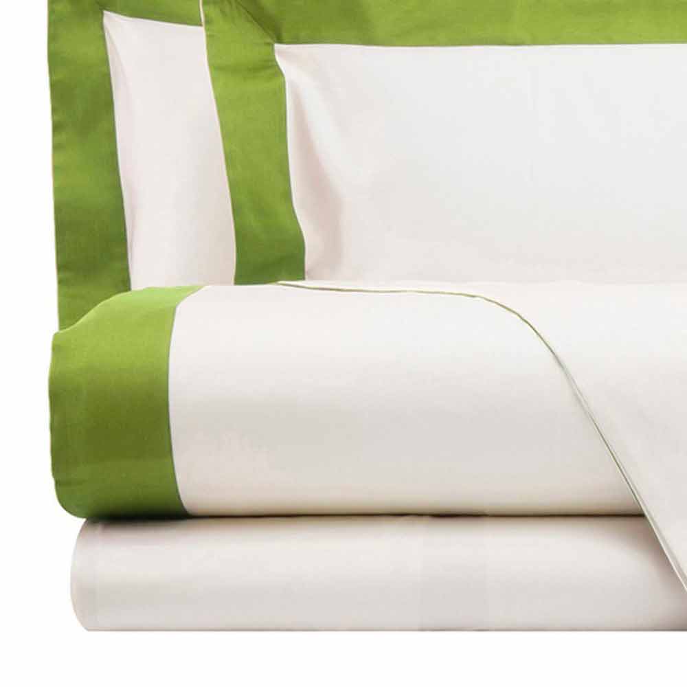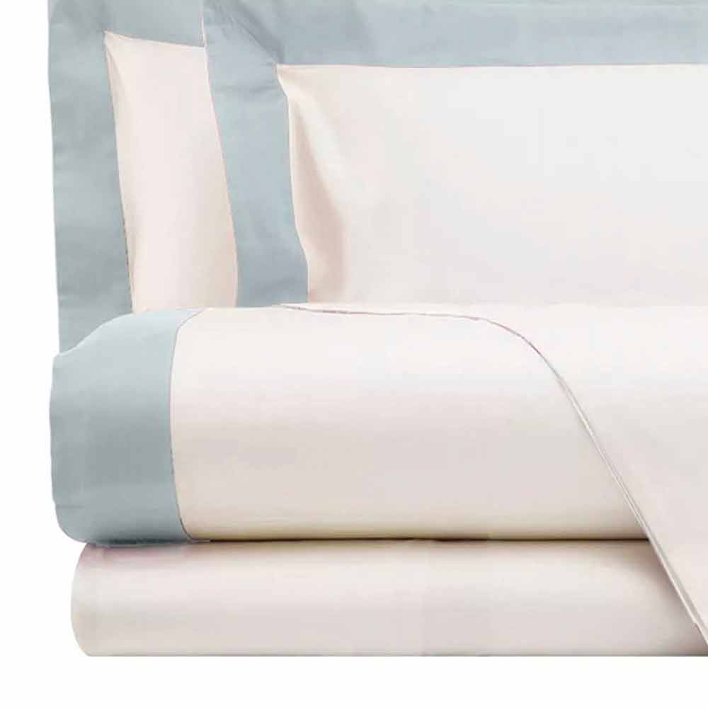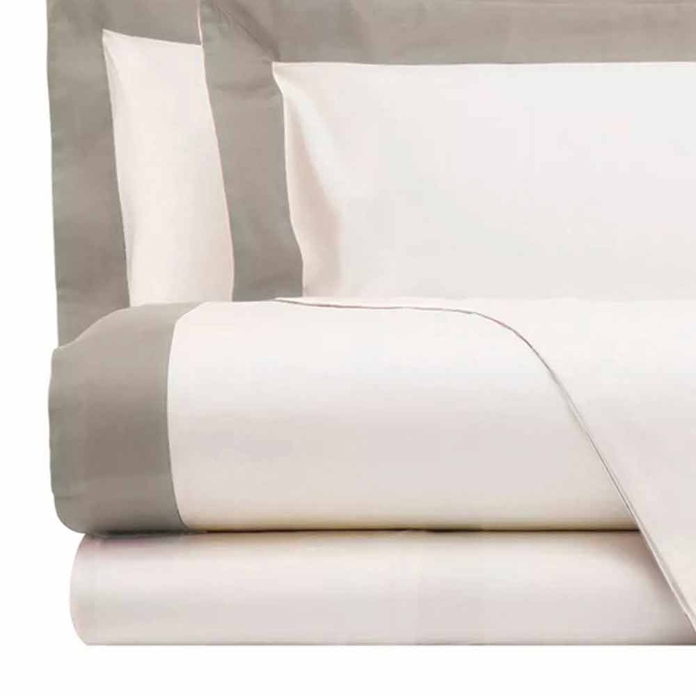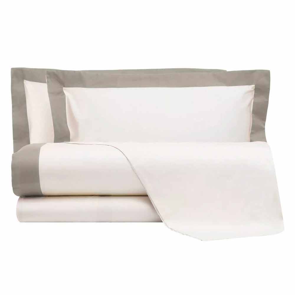Completo con sábanas marfil con cenefa en contraste de diferentes colores para cama doble en satén 200 TC made in Italy.