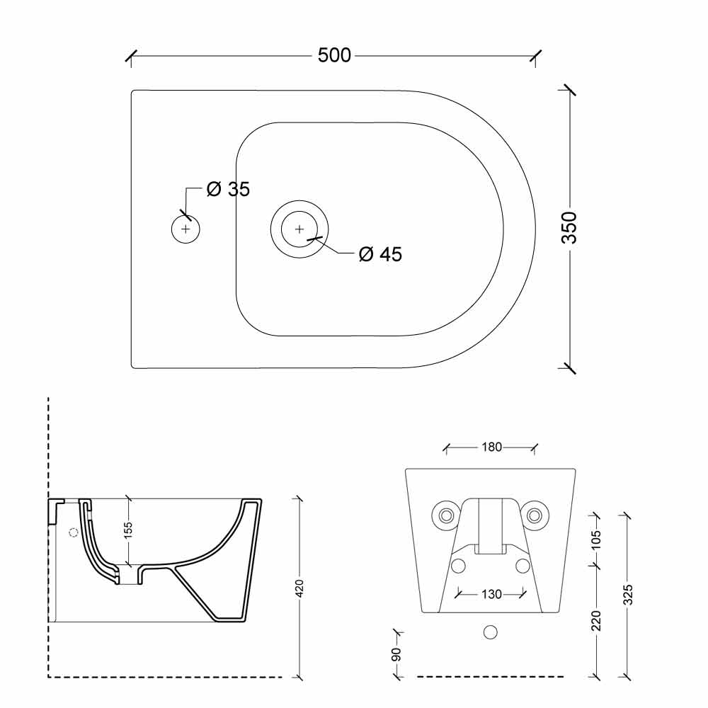 Bidé moderno de cerámica suspendido Shine Square 50x35cm, hecho en Italia