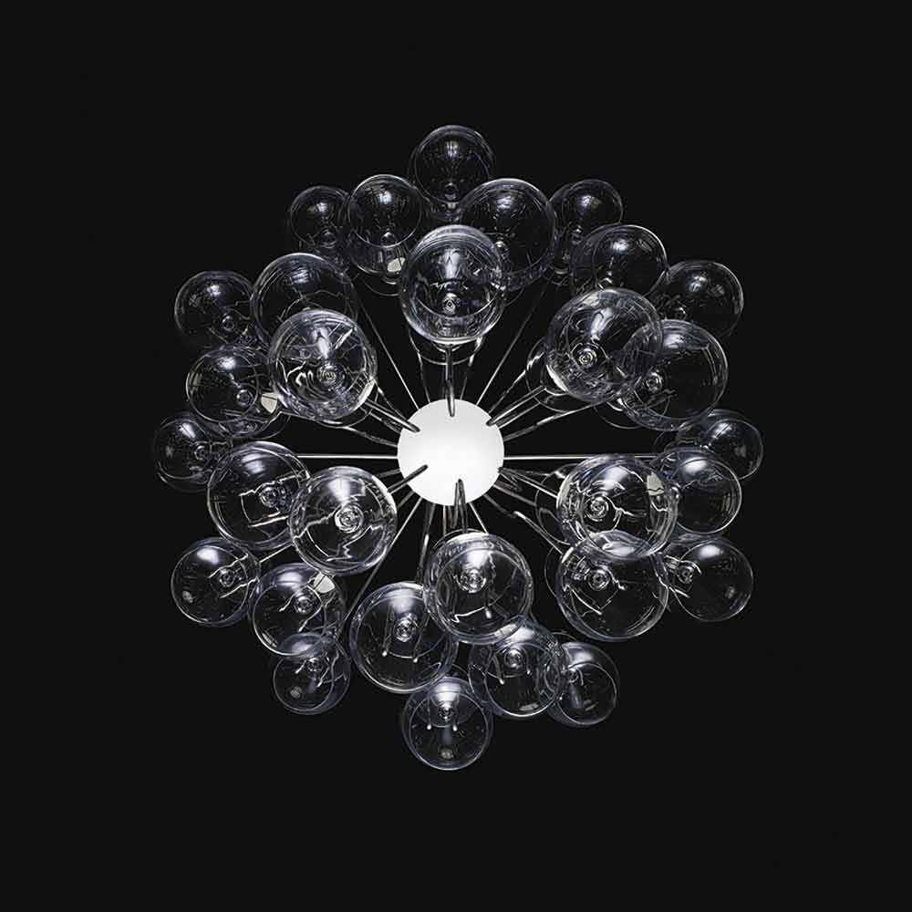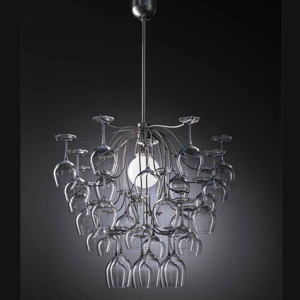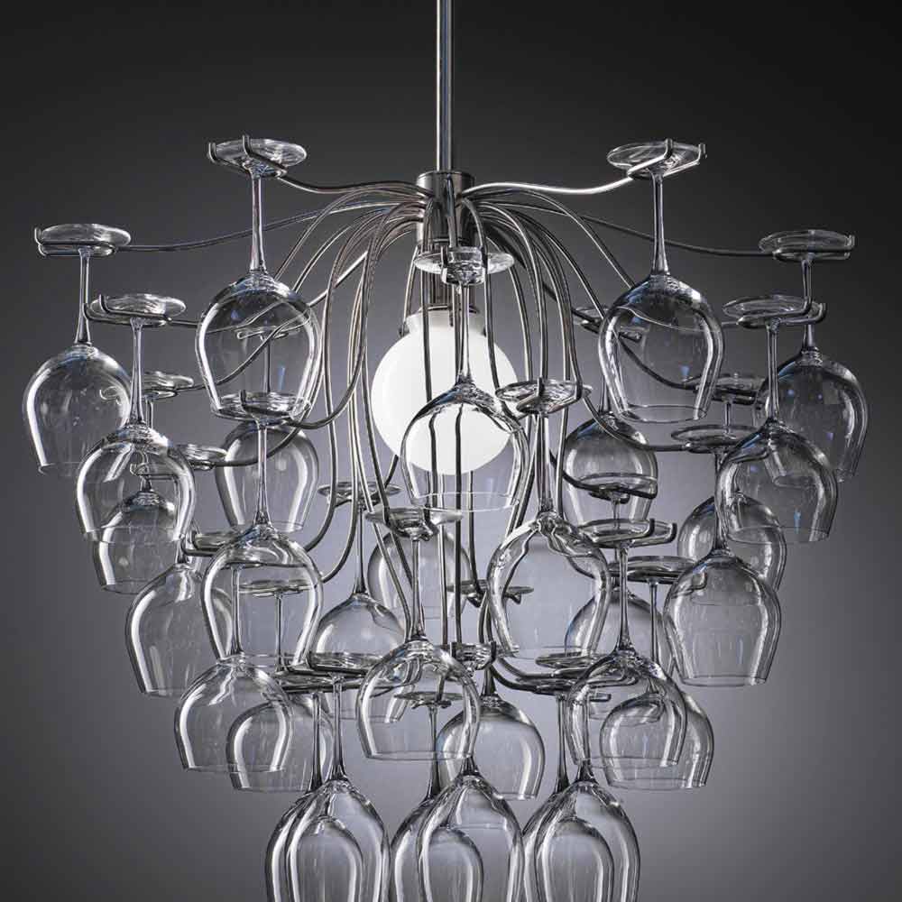 Lámpara de suspensión hecha con 30 vasos modelo Sauvignon