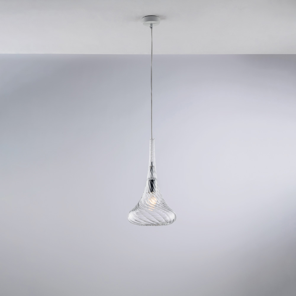 Disponible en acabados Transparente , Ámbar o Gris , esta lámpara colgante se adapta fácilmente a diversos ambientes: luminosa y minimalista en la versión transparente, cálida y envolvente en ámbar, discreta y elegante en gris. Es ideal para cocinas , islas , mesas de comedor , pasillos , rincones de lectura y espacios de diseño , ya sea individualmente o en composiciones.