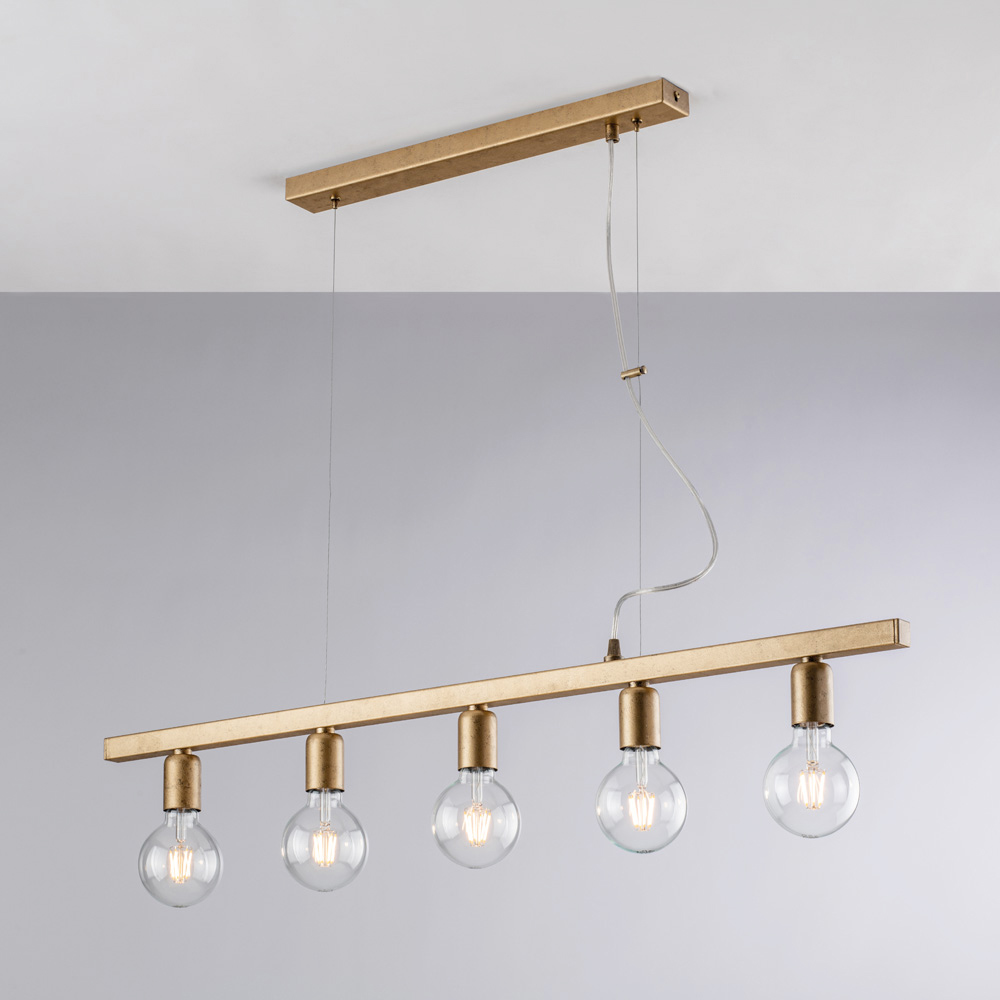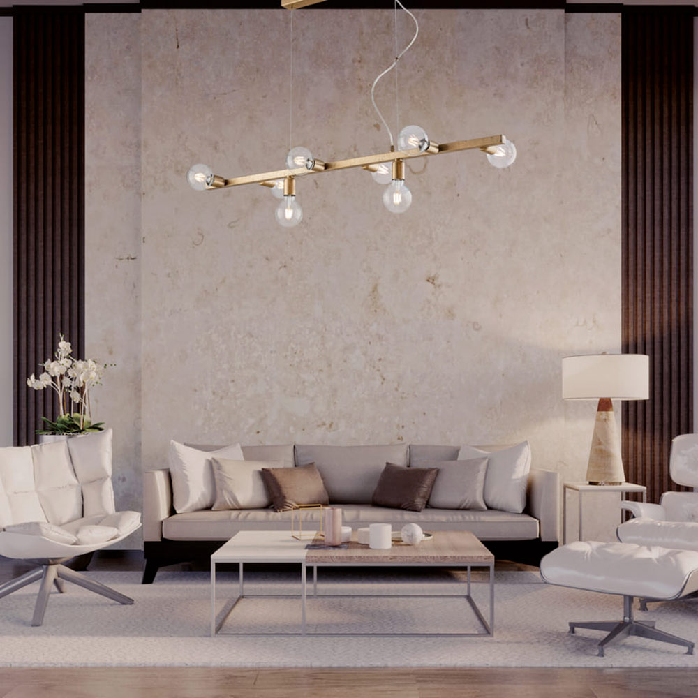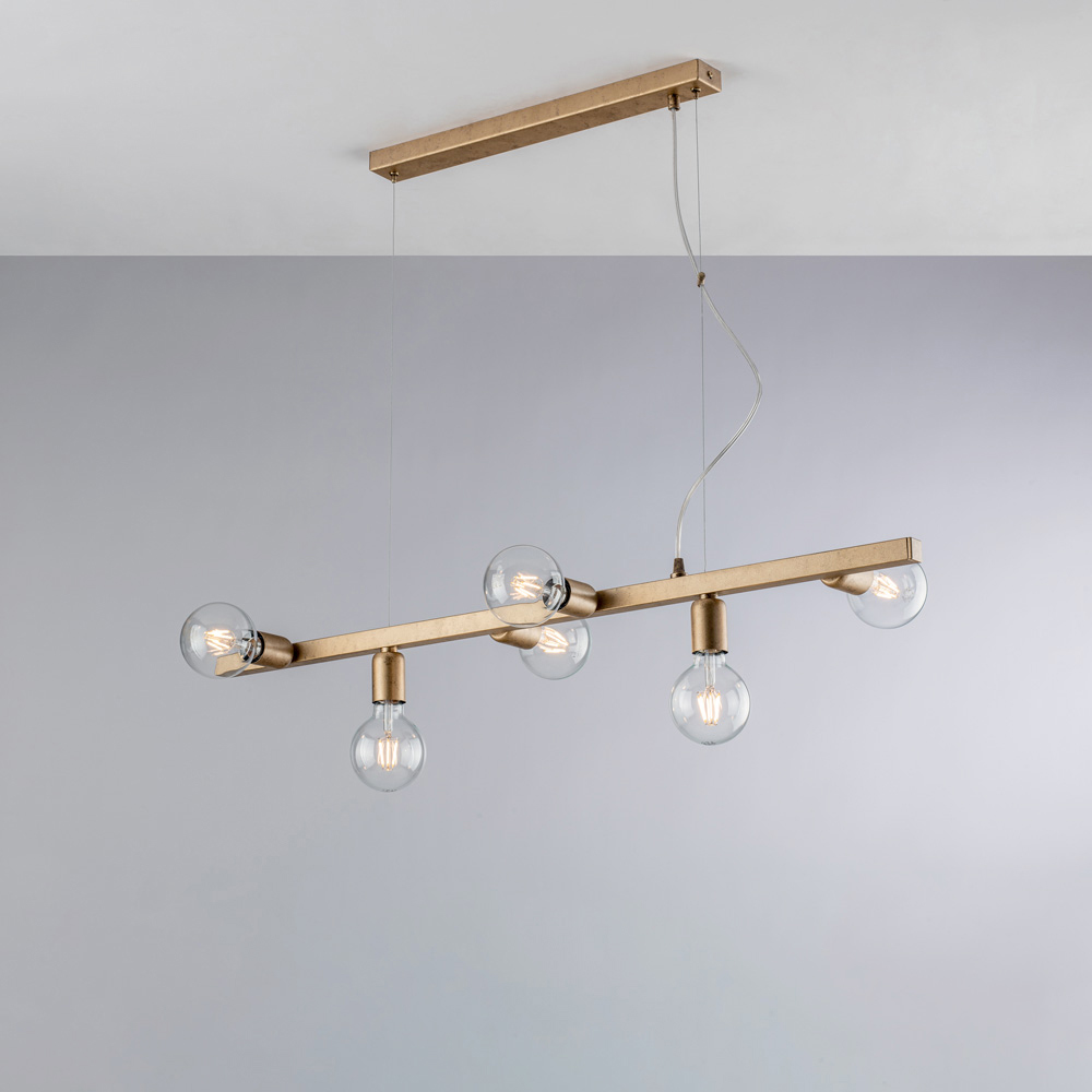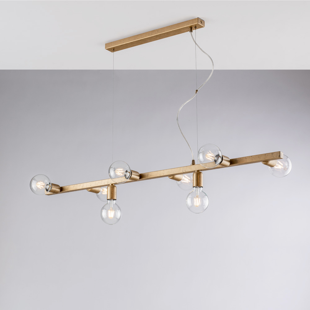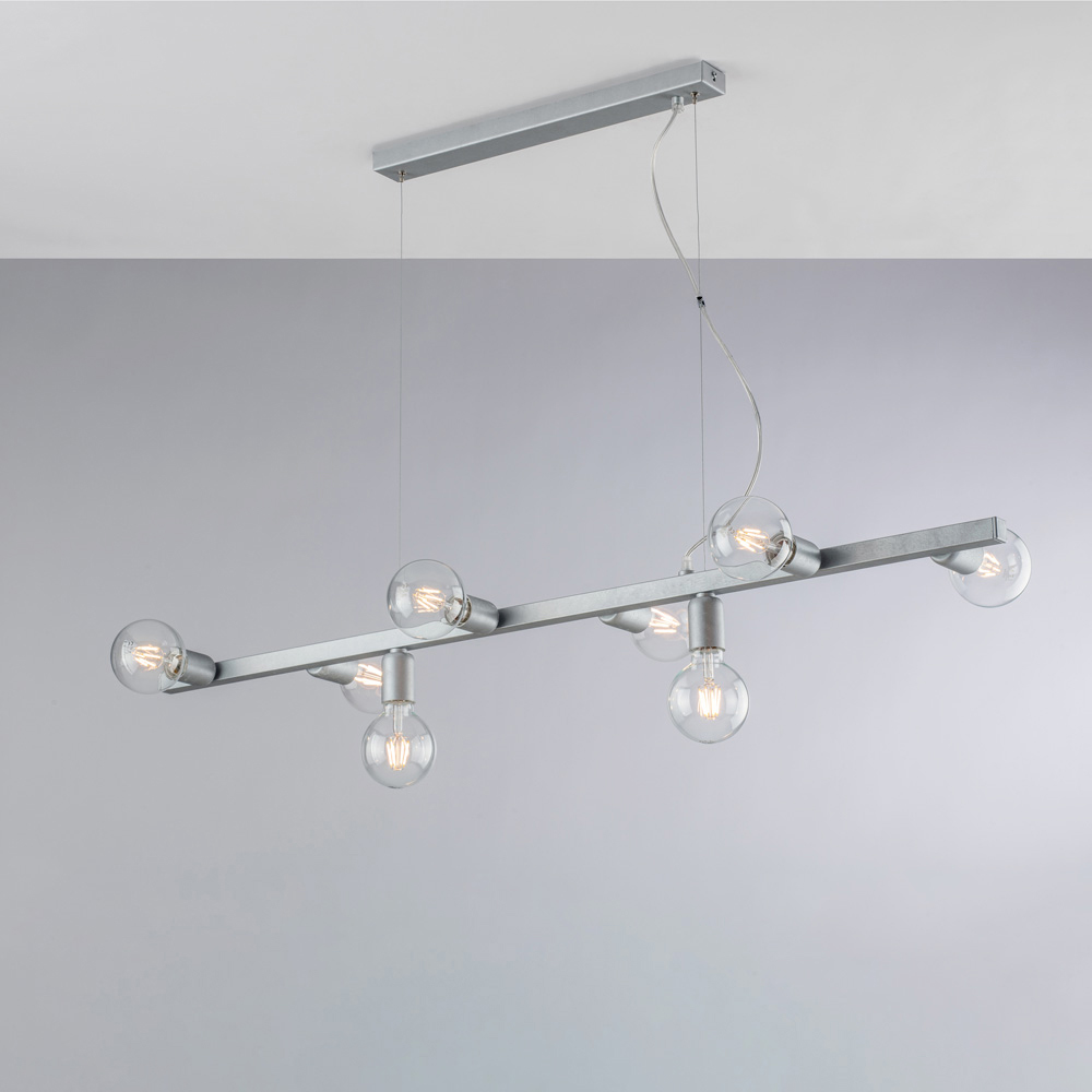 De líneas estilizadas, modernas y elegantes, esta lámpara colgante de hierro artesanal es una solución de iluminación diseñada para espacios contemporáneos y refinados. Su sencilla y equilibrada estructura horizontal alberga difusores esféricos de vidrio que proporcionan una luz difusa, uniforme y espectacular.