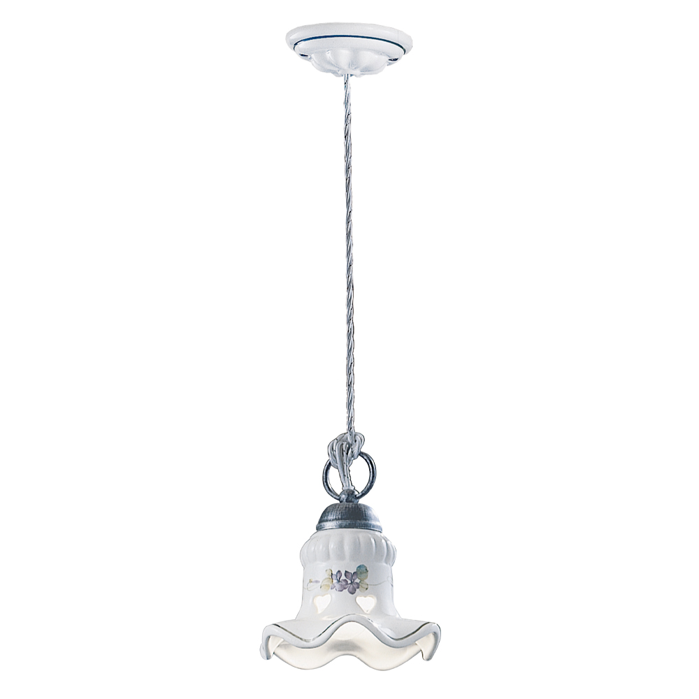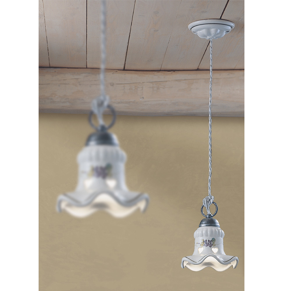 Lámpara colgante de hierro y cerámica decorada a mano, fabricada en Italia por Ferroluce.