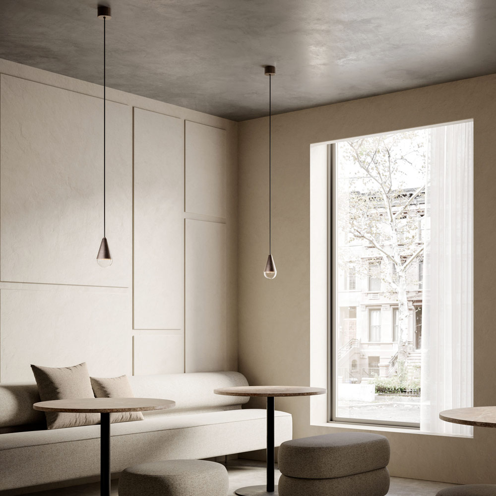 Made in Italy. Las líneas limpias de la colección de lámparas de interior resaltan la pureza del material hierro. El elemento colgante se puede utilizar solo o en combinación con otros, para crear composiciones lineales o agrupaciones con efecto escenográfico.