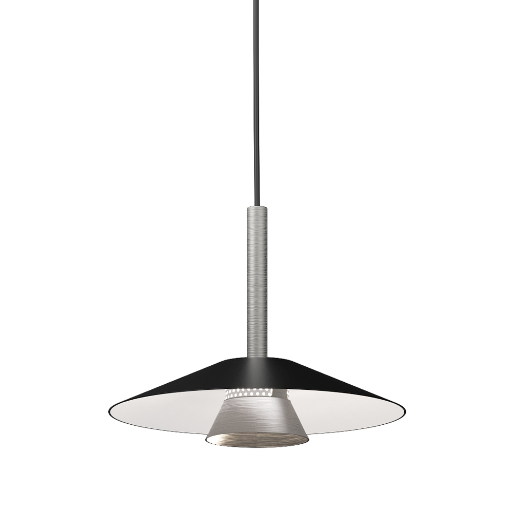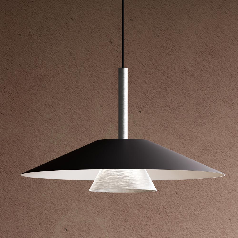 Esta lámpara es una fusión perfecta de diseño contemporáneo y elegancia industrial , diseñada para quienes aprecian los detalles refinados y una estética audaz. Su estructura geométrica, con un difusor cónico y un gran disco reflectante, crea un fascinante juego de volúmenes y contrastes , garantizando una luz direccional y envolvente .