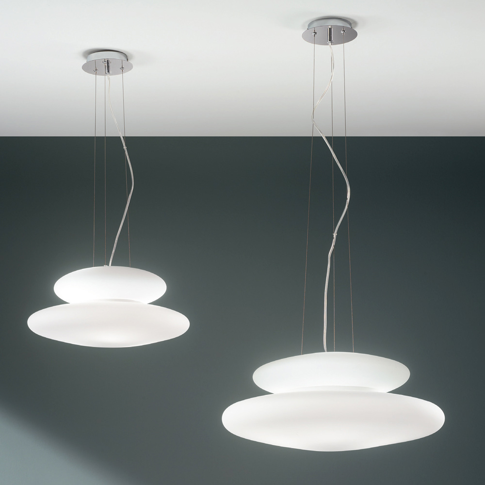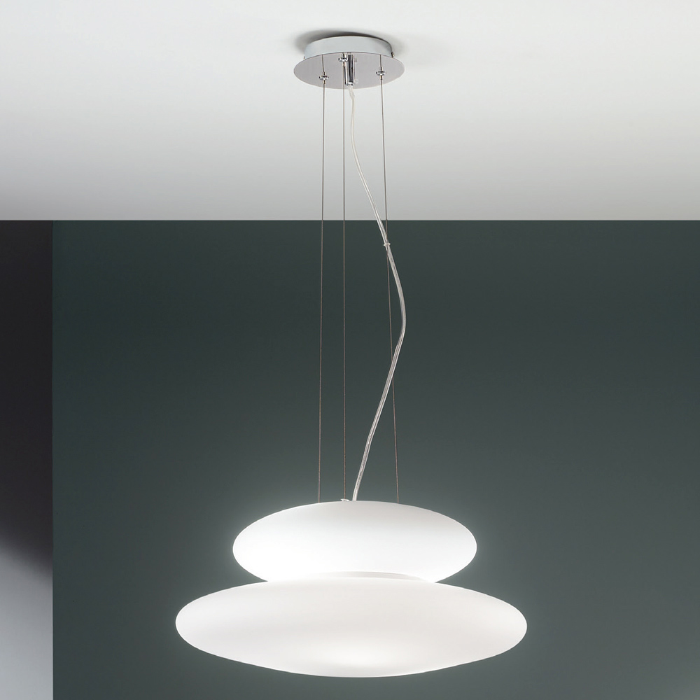 alma delicada y elegante que es una solución perfecta para espacios domésticos con una estética contemporánea. Formado por dos discos supervivientes en vidrio soplado, logra conquistar la atención convirtiéndose en el verdadero protagonista de la estancia y al mismo tiempo asegurando