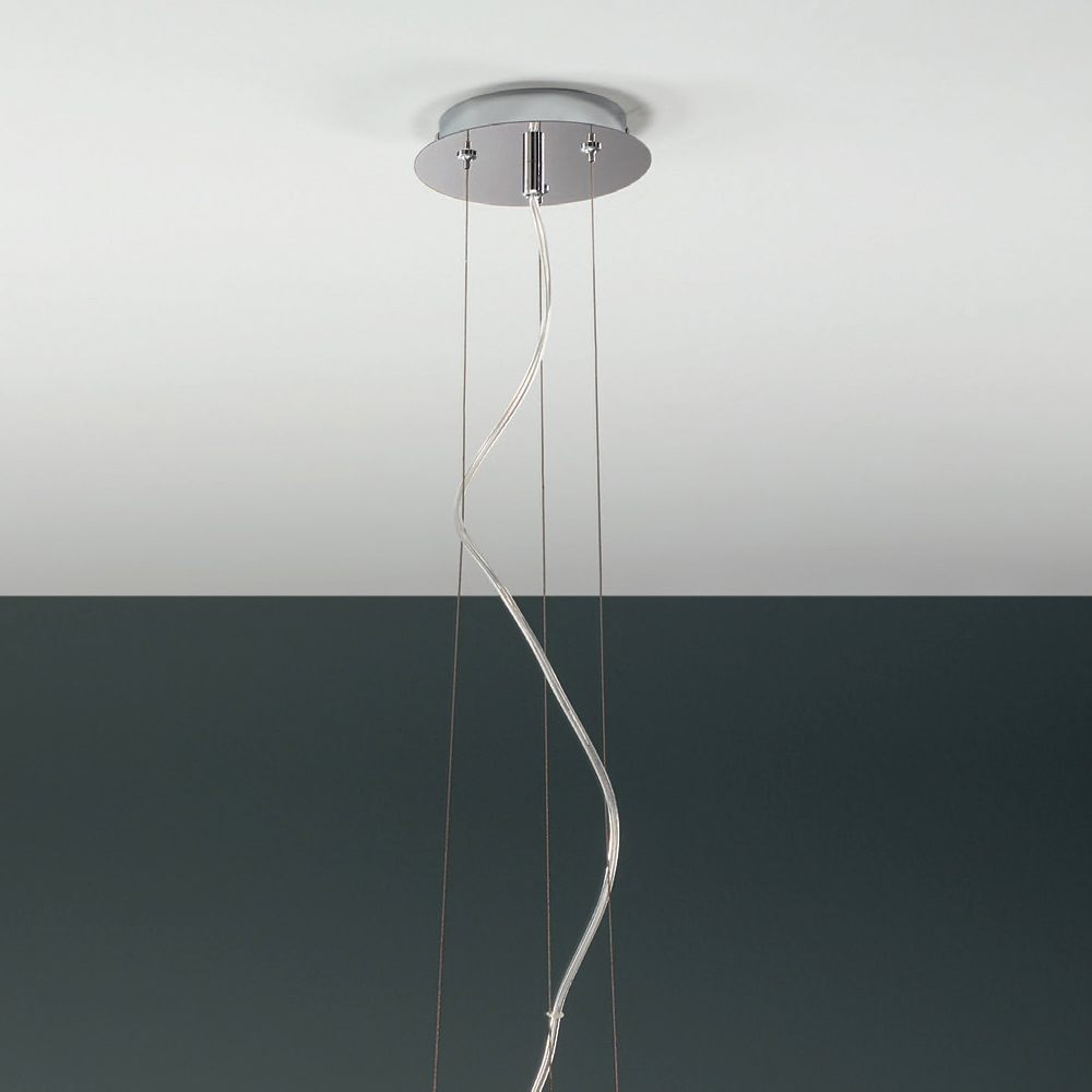 metal cromado y difusor de vidrio soplado blanco grabado al ácido completo con cables regulables en longitud. Ideal para quienes buscan un estilo