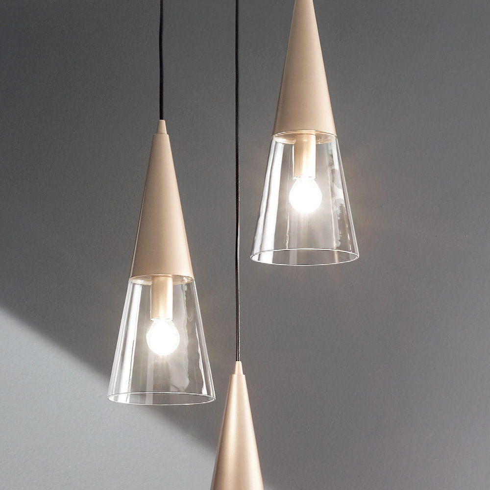 diseño moderno y vanguardista . Las maravillosas pantallas de vidrio soplado dan personalidad a la lámpara y subrayan su elegancia. Los acabados propuestos, en cambio, completan la estética final del producto, marcando su singularidad y creando un