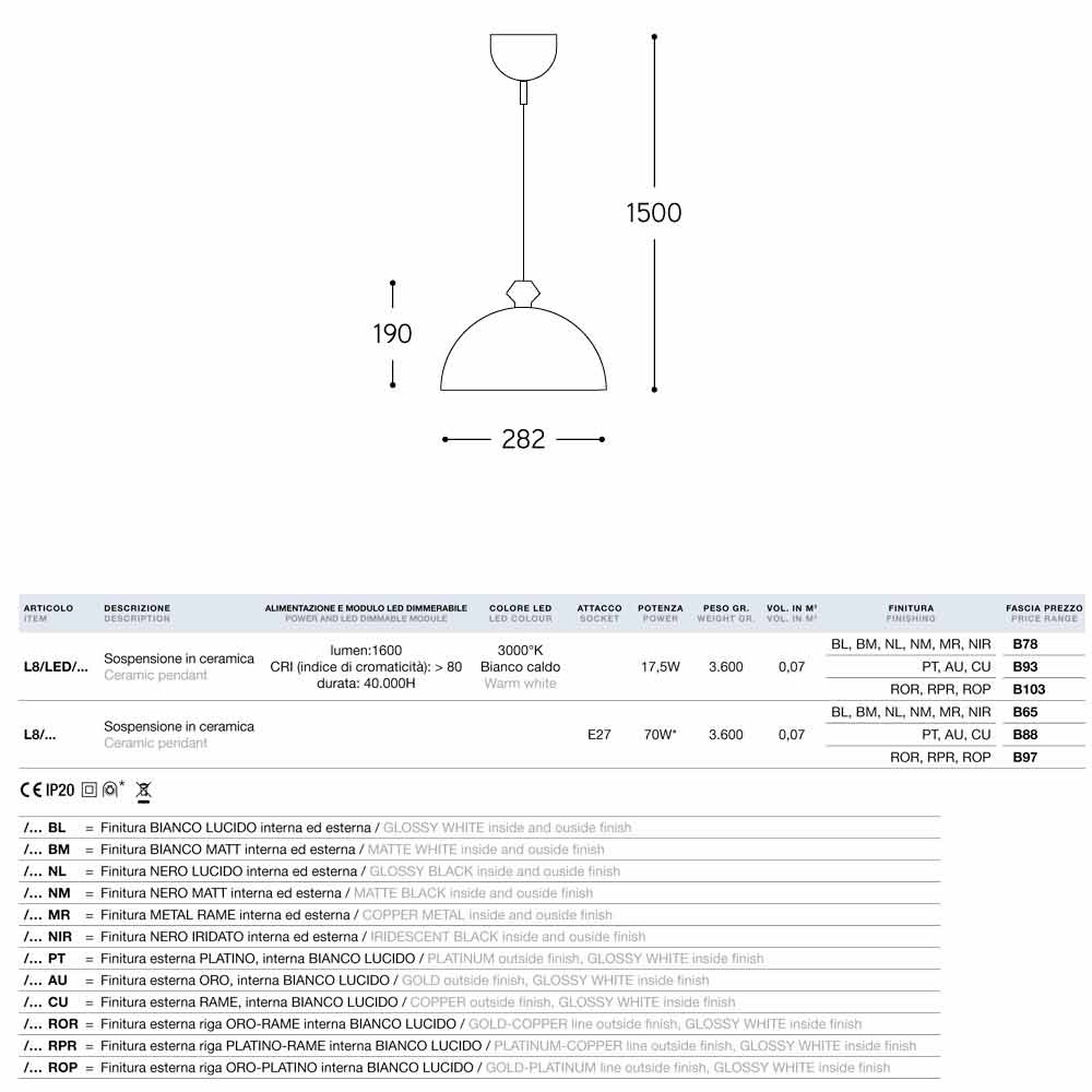I Lustri 8 está disponible en diferentes acabados y con portalámparas estándar E27 o luz LED.
