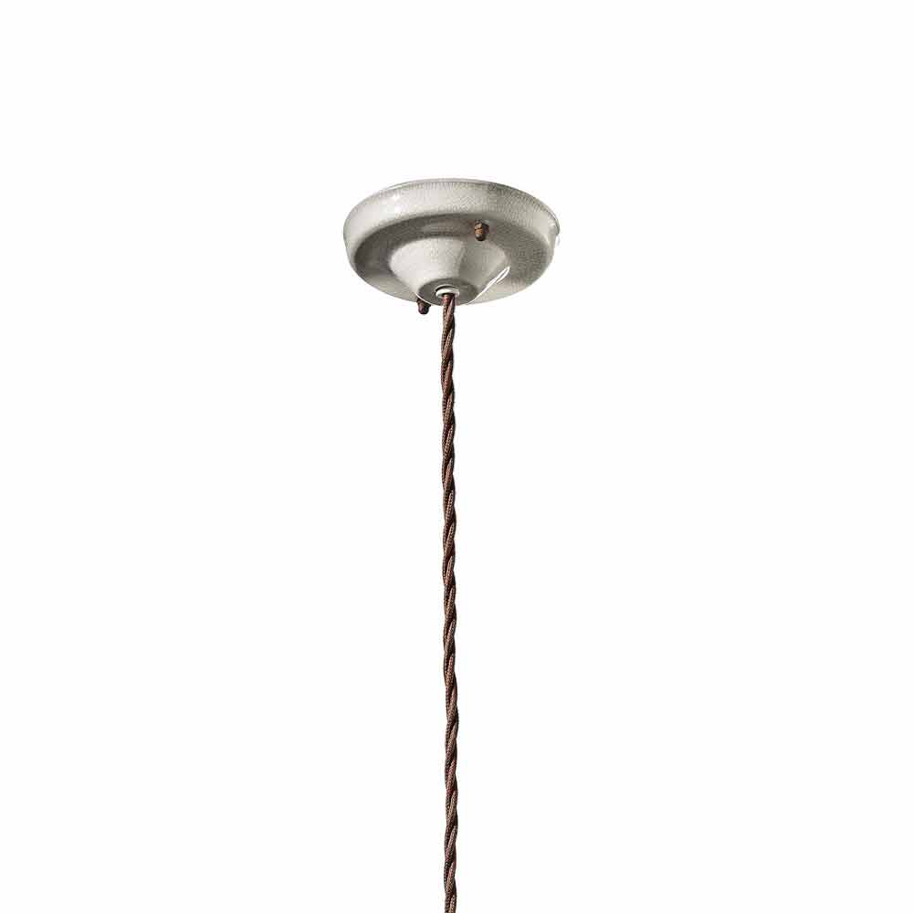 Amplia copa y fácilmente regulable en altura gracias al cable trenzado que completa el estilo industrial. Detalles de metal óxido mate y cerámica para completar un equilibrio de formas llenas y vacías. Está inspirado en el estilo rústico americano. Esta lámpara, de colores tenues y sabor vivido, es sencilla y atemporal. Luz pura sin blindaje.