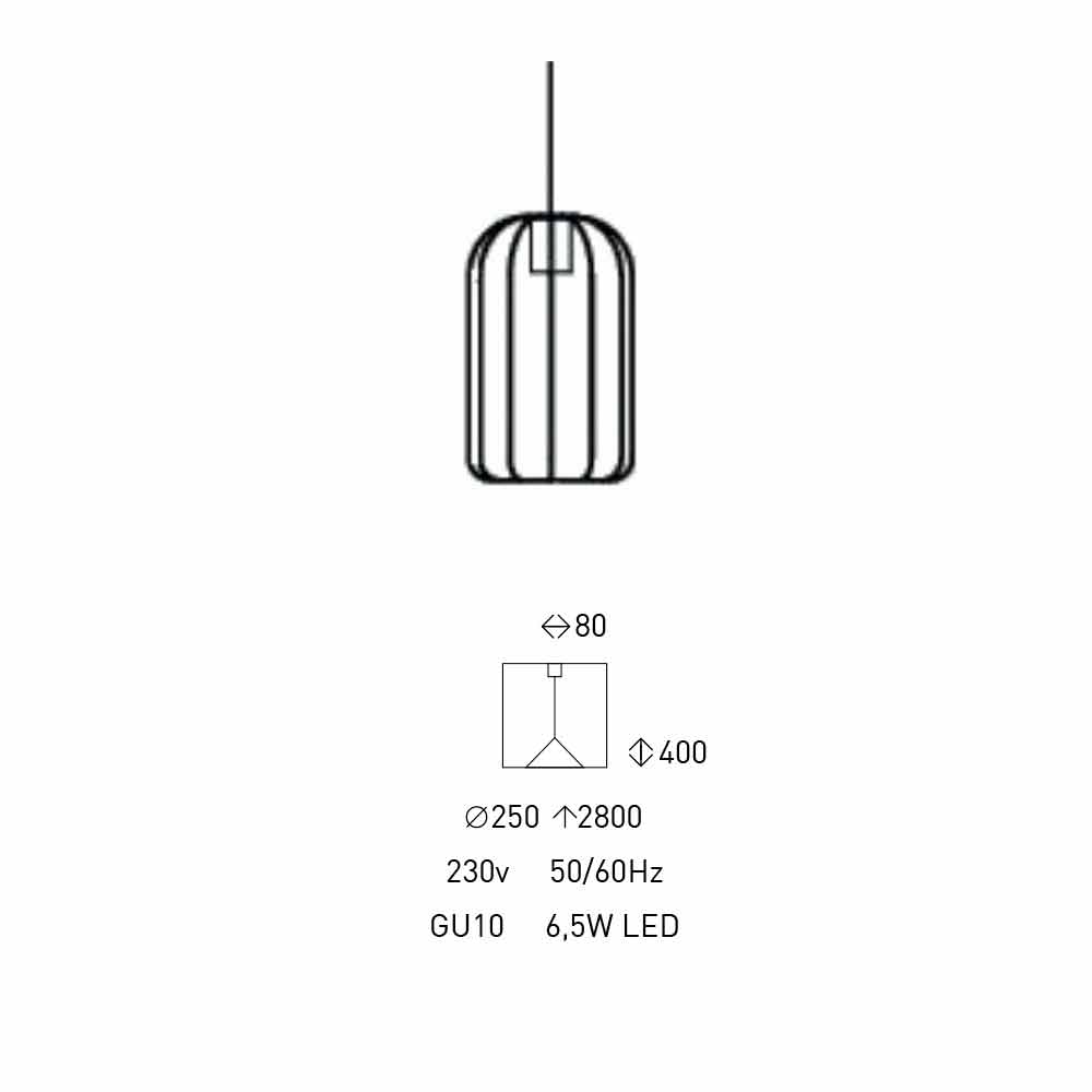 Lámpara de suspensión en hilo metálico mate de diseño Made in Italy.