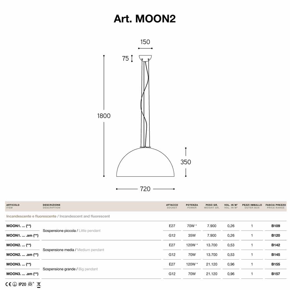 Este artículo no se puede vender en EE. UU. Lámpara colgante de acero de diseño moderno Moonlight de Aldo Bernardi, IP 20.