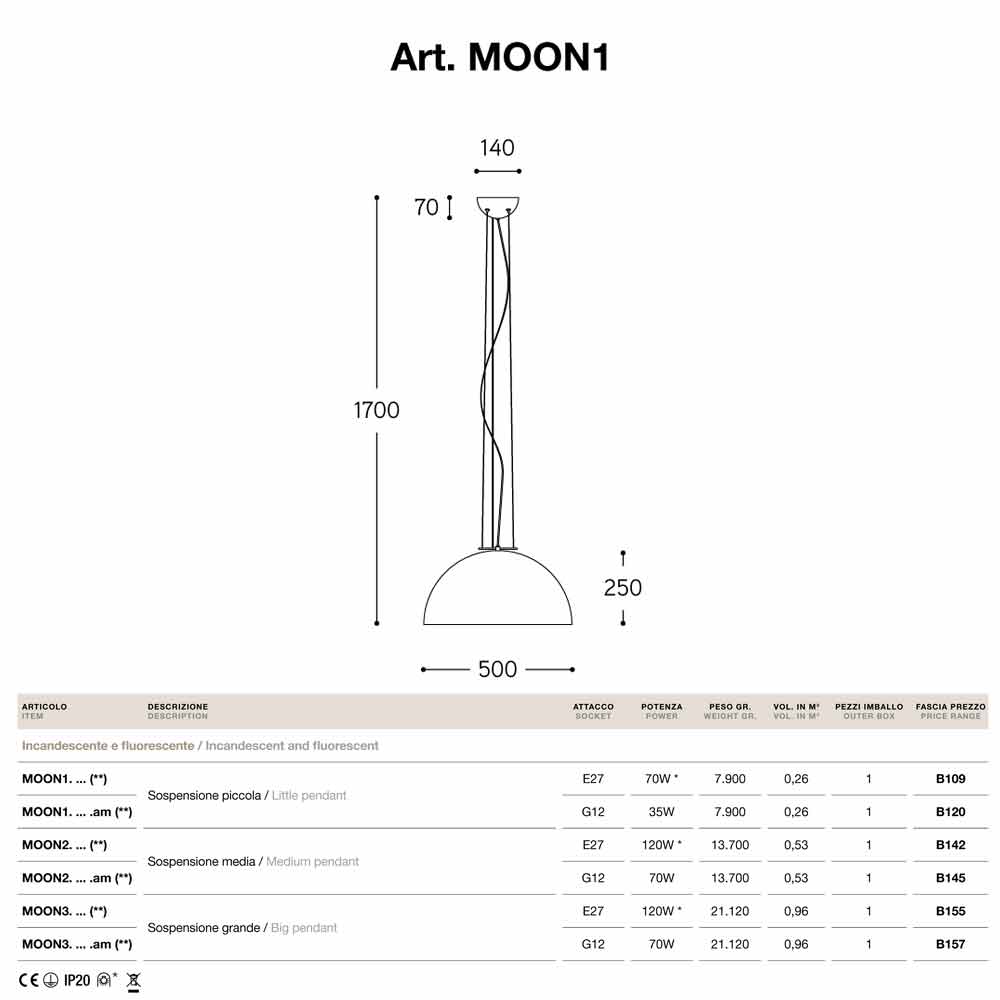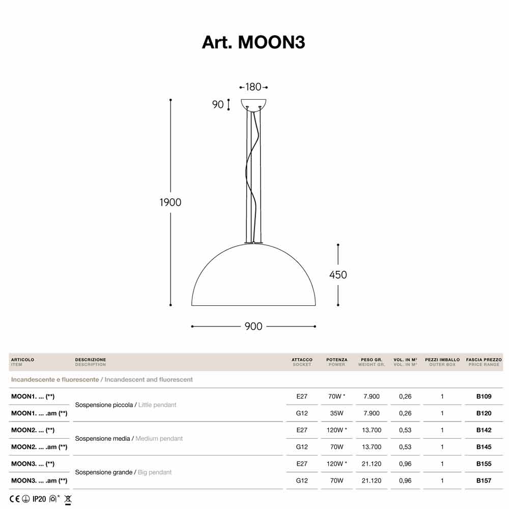 Moonlight está disponible en diferentes tamaños (pequeño, mediano, grande) y en diferentes colores: - plata en el interior - oro en el interior - bronce en el interior Bombilla no incluida