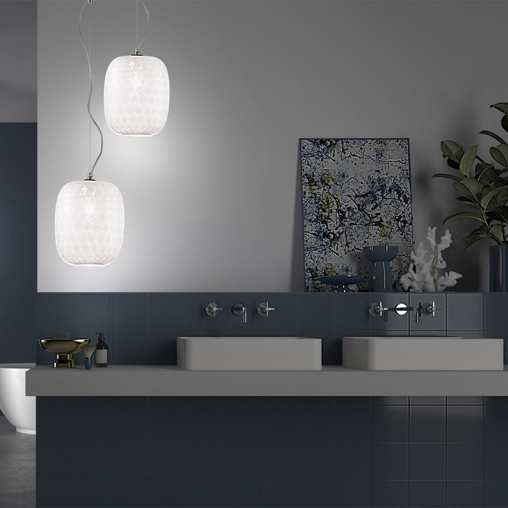 Una idea de iluminación intrigante y de gran personalidad realizada en vidrio estratificado o transparente trabajado con la técnica Balloton, ideal para quienes aman crear juegos de luces exclusivos junto con un ambiente cálido y acogedor.