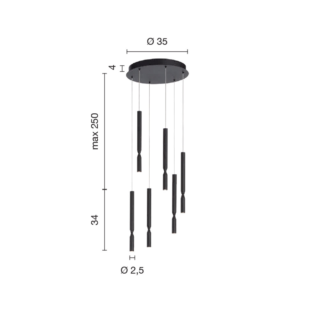 - 6 luces: diámetro 2,5 x altura 34 cm cada una