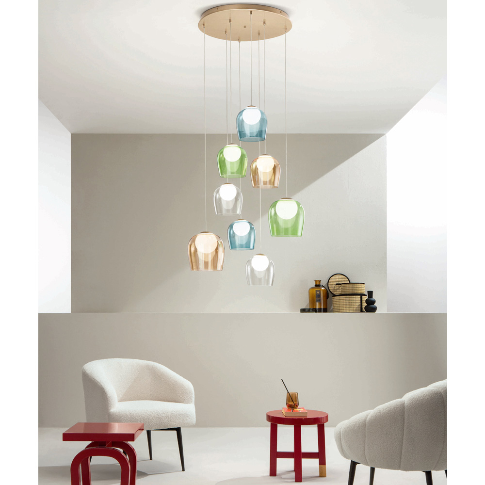 Araña con luz LED en metal pintado con pantalla de vidrio opcional Made in Italy