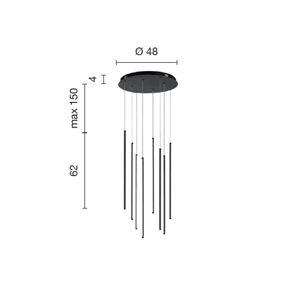 - base en el techo: Diámetro 48cm x Alto 4cm