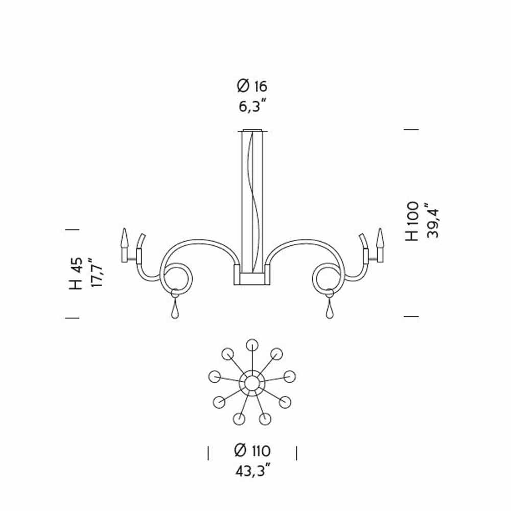 NB : la lámpara de araña está disponible en una amplia gama de colores diferentes y, al estar hecha a mano, es completamente personalizable también en forma y tamaño.