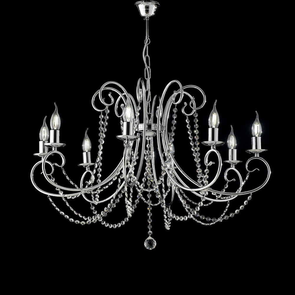 Un ícono de la elegancia atemporal, este clásico candelabro de hierro cautiva a primera vista con sus líneas sinuosas , brazos finamente elaborados y cascadas de cristales decorativos que reflejan la luz con un brillo refinado.
