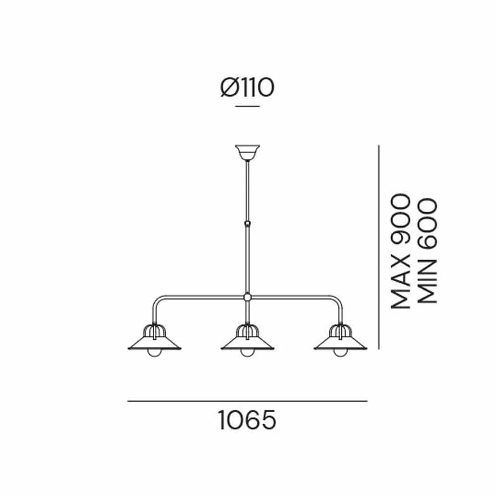 Araña de tres picos de latón de estilo vintage, fabricada en Italia.