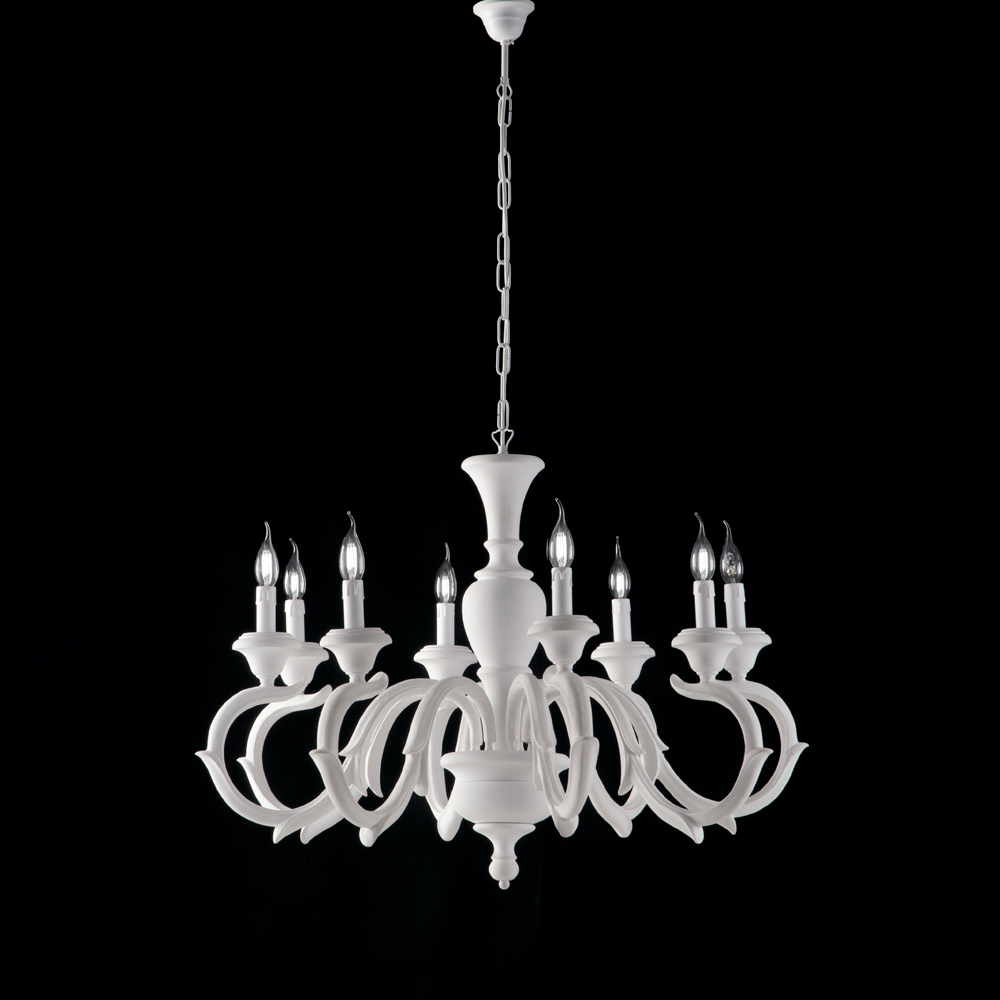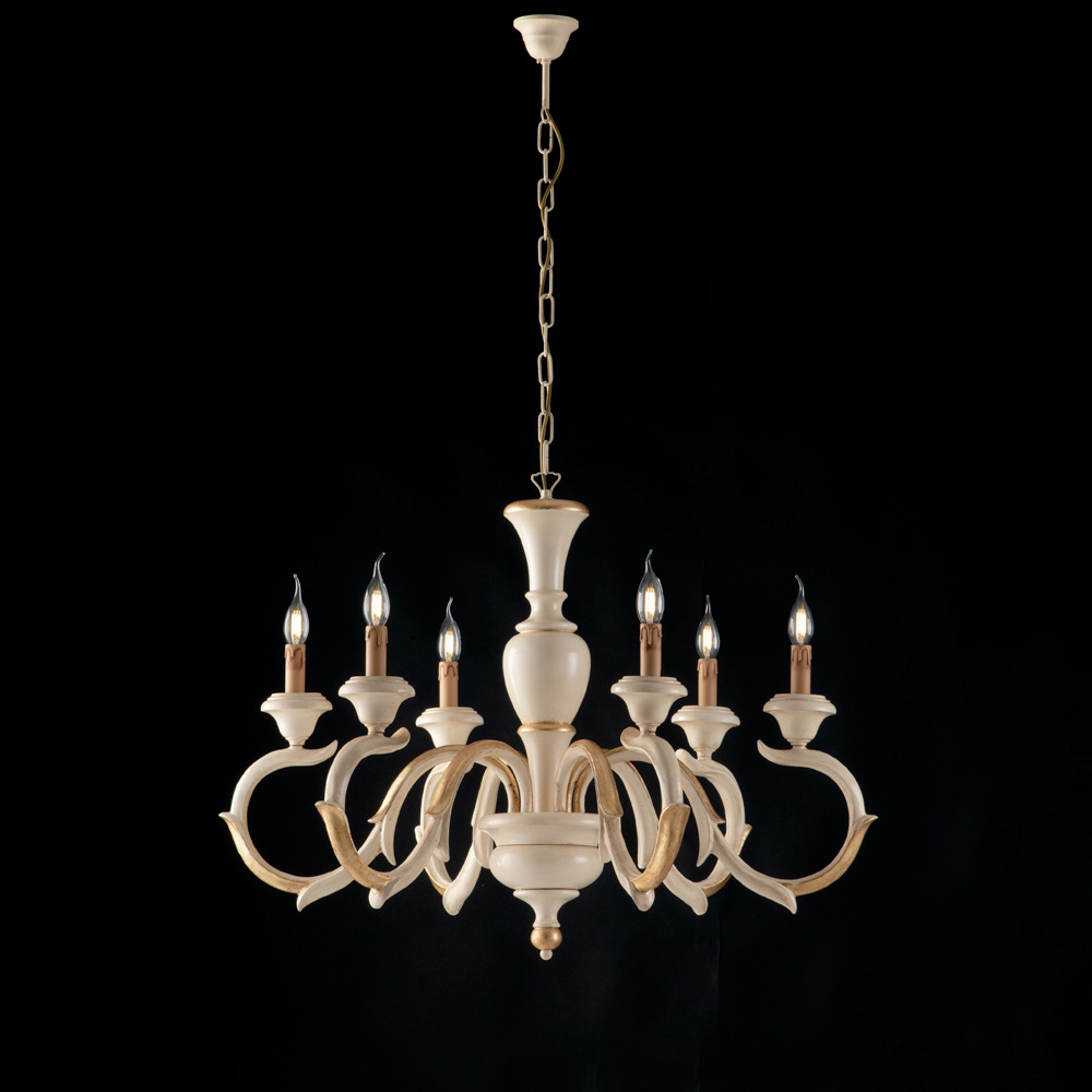Disponible en los elegantes acabados blanco desgastado o pan de oro/marfil , esta lámpara de araña representa una opción de gran prestigio para salas de estar, comedores, entradas imponentes y áreas de recepción . Las luces tipo vela emiten una luz cálida y envolvente, realzando el espacio con una discreta opulencia.
