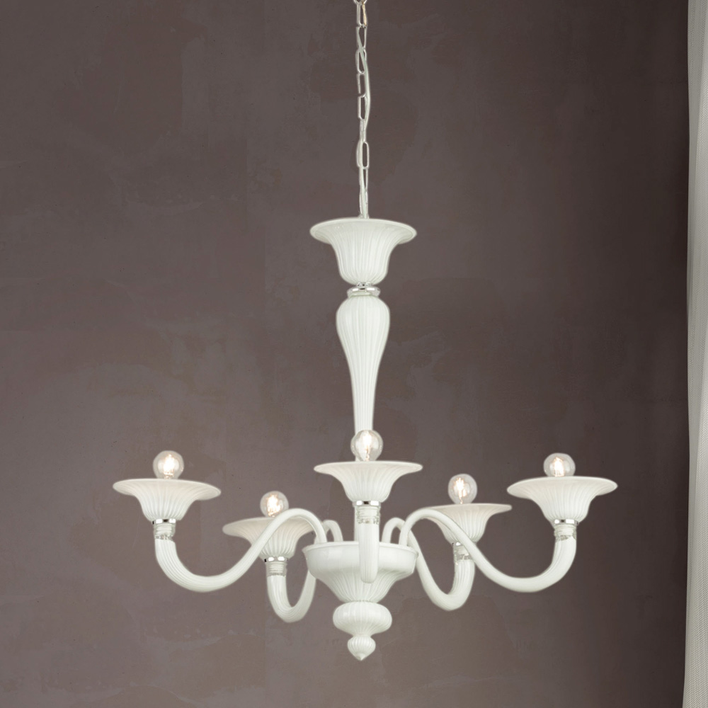 Araña clásica de cristal Venecia blanco soplado a mano.