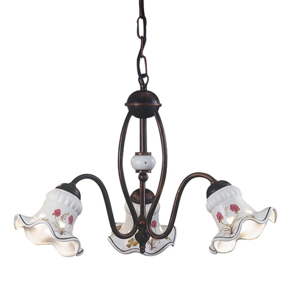 Lámpara de araña vintage de 3 o 5 luces en hierro y cerámica decorada a mano - Chieti