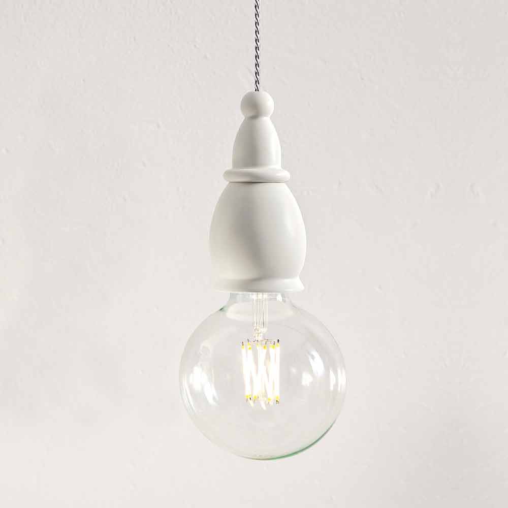 Lámpara colgante de diseño en cerámica de color blanco, "Fate" de Aldo Bernardi fabricada en Italia.