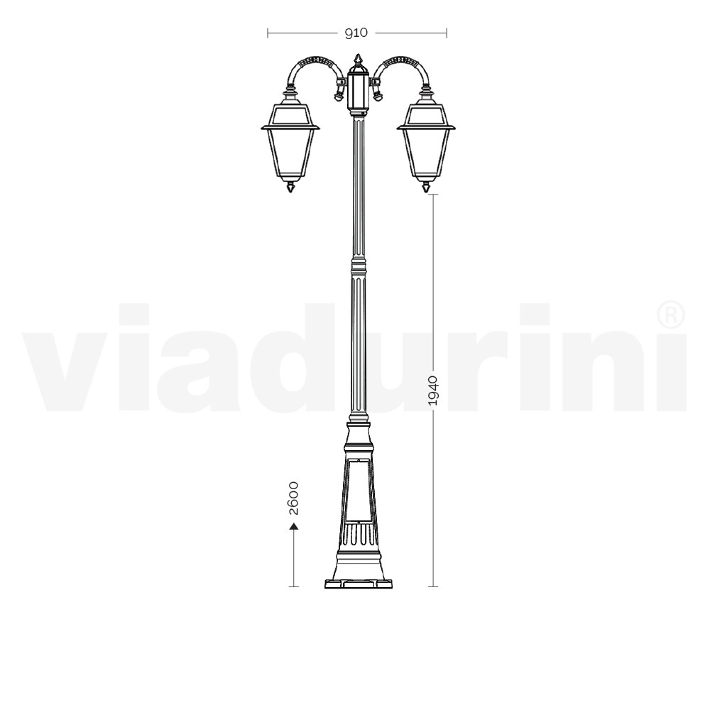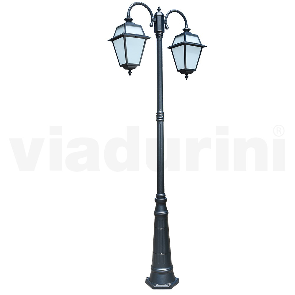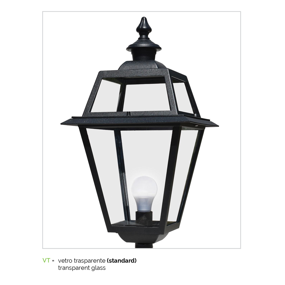 Lámpara de jardín vintage de aluminio con difusor de cristal Made in Italy.