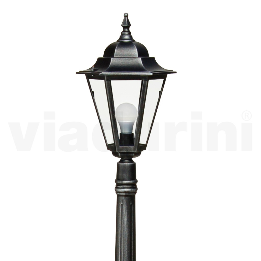 Lámpara de jardín realizada con estructura de aluminio inyectado y difusor de cristal transparente , íntegramente Made in Italy.
