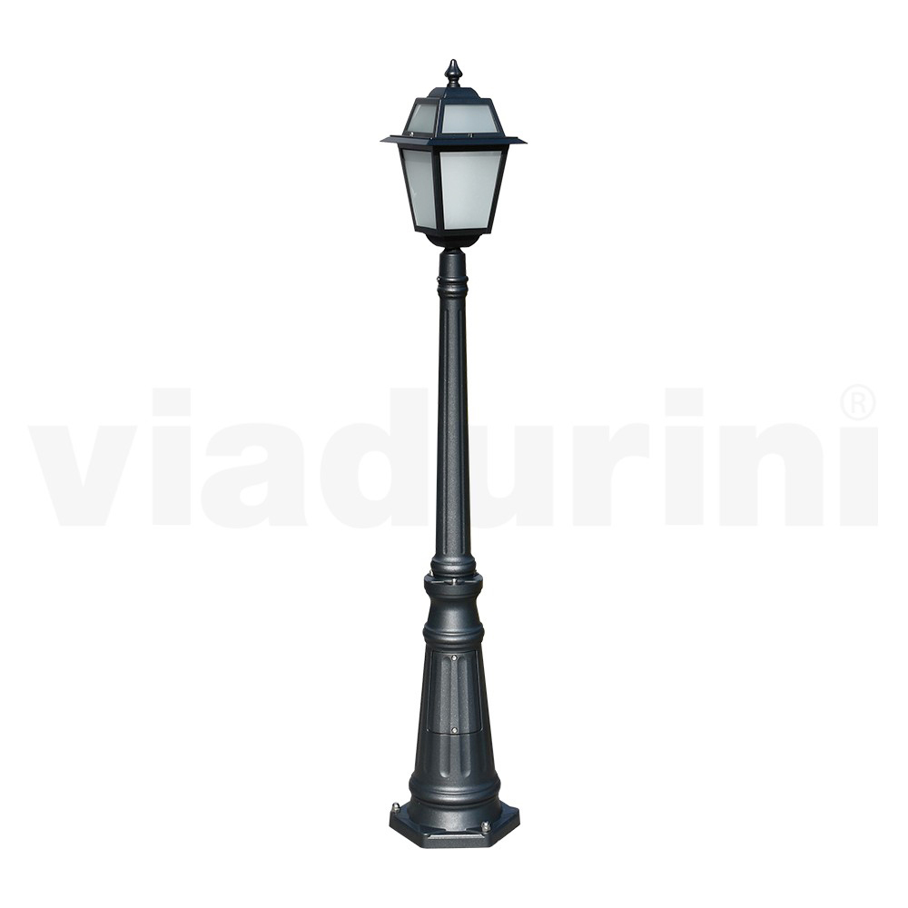Esta farola de aluminio fundido con acabado antracita es una opción elegante para cualquier entorno al aire libre. Con un diseño clásico y elegante, presenta detalles artesanales que evocan una atmósfera de tiempos pasados. El farol, cuidado hasta el más mínimo detalle, difunde una luz cálida y suave, ideal para crear un camino luminoso en tu jardín o para delimitar con clase una zona de relax al aire libre. Solidez y belleza se unen en esta farola, diseñada para perdurar en el tiempo y resistir los agentes atmosféricos. Elegante y funcional , será la firma luminosa de tu espacio exterior.
