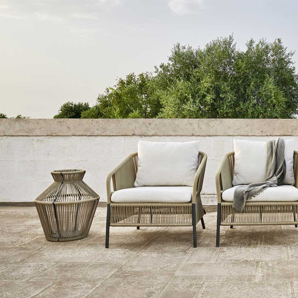 Lámpara de jardín de aluminio con tejido de fibra, LED y balastro incluido Made in Italy.